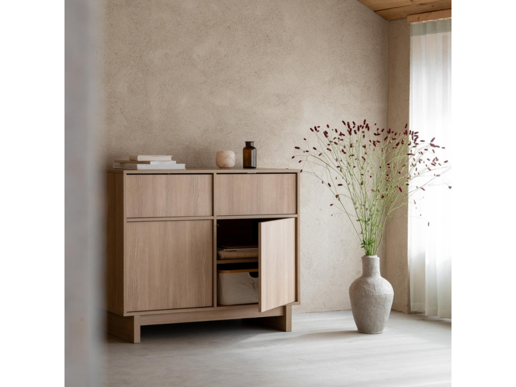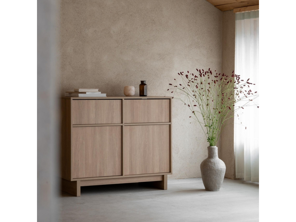 Komodu Kyo definují čisté linie, robustní silueta a univerzalita. Dvoje dvířka a dvě prostorné zásuvky se systémem push-to-open usnadňují udržovat úložný prostor organizovaný a přehledný. Nástavbou ze stejnojmenné kolekce (prodává se zvlášť) vytvoříte z klasické komody dětský přebalovací pult s velkorysým prostorem, kam se vejdou všechny nezbytnosti – od přebalovací podložky po dětskou kosmetiku. Jakmile vaše dítě povyroste a nástavba nebude již potřeba, lze ji stejně jednoduše odinstalovat a komodu díky tomu využívat jako předtím. Kolekce Kyo nabízí širokou škálu prvků, které k sobě přirozeně ladí a vybízejí ke vzájemné kombinaci pro dokonale sladěný interiér.