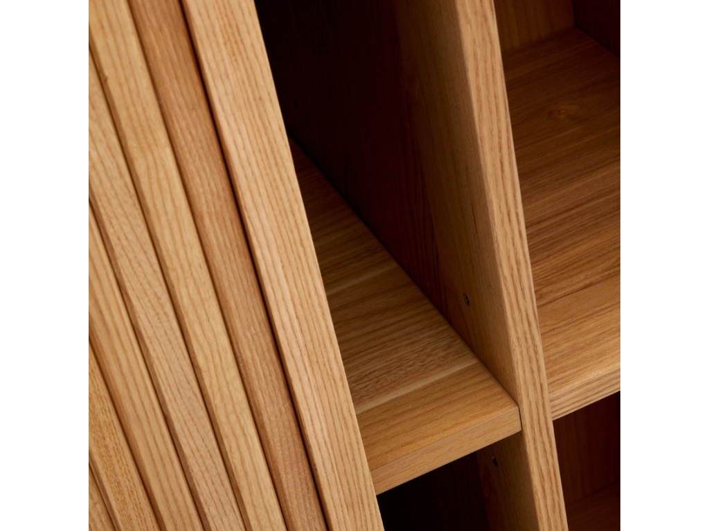 Hledáte úložné prostory pro vaši domácnost? Skříň Mailen z jasanové dýhy je rozdělena do 3 otevřených a 6 uzavřených polic, které se skrývají za lamelovými posuvnými dvířky. Díky vyšší podnoži si ji navíc můžou bez obav pořídit i domácnosti s robotickým vysavačem. Mailen pochází ze stejnojmenné kolekce nábytku, vytvořené týmem Kave Home, ve které najdete další kousky, které vám umožní dokonale sladit váš interiér. Navíc se řadí do série kolekcí s názvem ZEN BALANCE, která si zakládá na nadčasové eleganci v duchu minimalismu a dokonalé harmonii s přírodou. Mailen tak můžete doplnit i o dekorace a doplňky z této série kolekcí a vyšperkovat tak váš domov k dokonalosti.