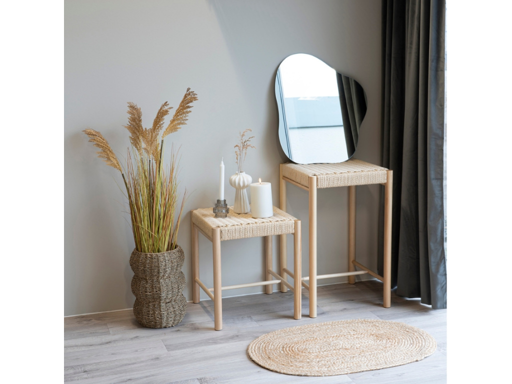 Čistý a jednoduchý design stoličky Abannon od značky Nordic Living bude potěšením pro interiéry zařízené ve skandinávském či boho stylu. Stolička je vyrobena z topolového dřeva, které atraktivně doplňuje proutěný sedák z přírodního materiálu. Abannon najde své využití nejen jako stolička k sezení, ale také jako odkládací stolek například v předsíni, kde může být oporou pro zrcadlo nebo různé dekorativní předměty. Zkombinujte stoličky dvou různých velikostí a vytvořte tak působivý koutek ve svém interiéru.