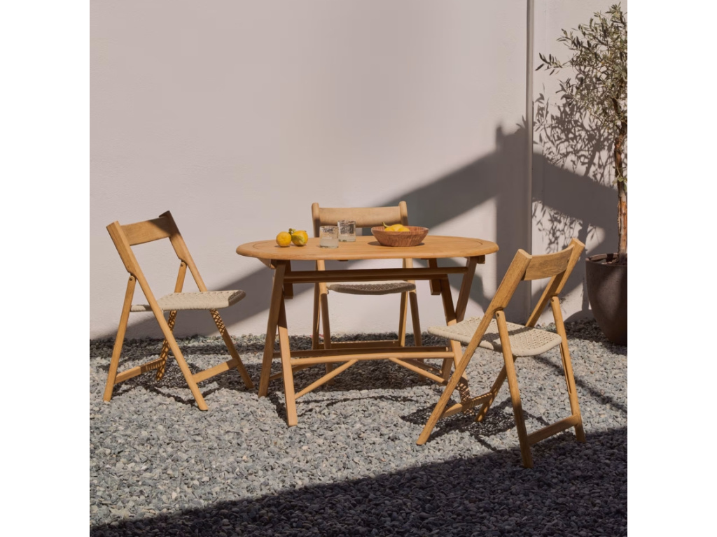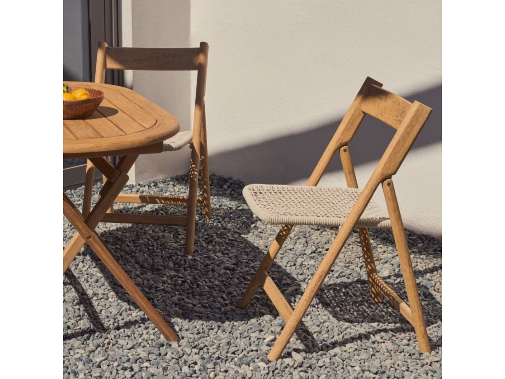 Série zahradního nábytku Kave Home Dandara dodá každému venkovnímu posezení eleganci a styl – tyto designové kousky rozhodně neuniknou pozornosti žádné vaší návštěvy. Najdete v ní lehátka, stolky i židle, takže celý prostor může být dokonale sladěn. Jídelní židle se pyšní masivní akátovou konstrukcí se sedákem z lanového výpletu. Akátové dřevo je opatřeno certifikací FSC, což znamená, že pochází z udržitelně a zodpovědně obhospodařovaných lesů. Židle navíc potěší možností kdykoliv ji snadno složit – zabere tak při uskladnění daleko méně místa. Spolu se stolem Dandara představuje ideální místo třeba pro snídani na čerstvém vzduchu, ať už na balkoně, terase nebo pod pergolou.