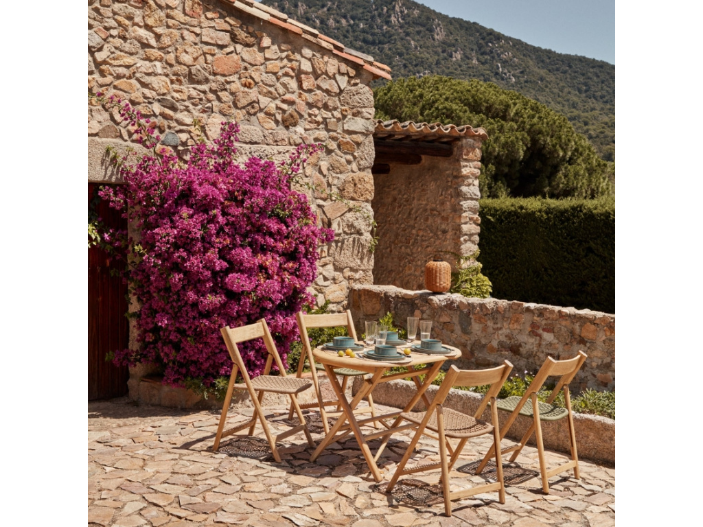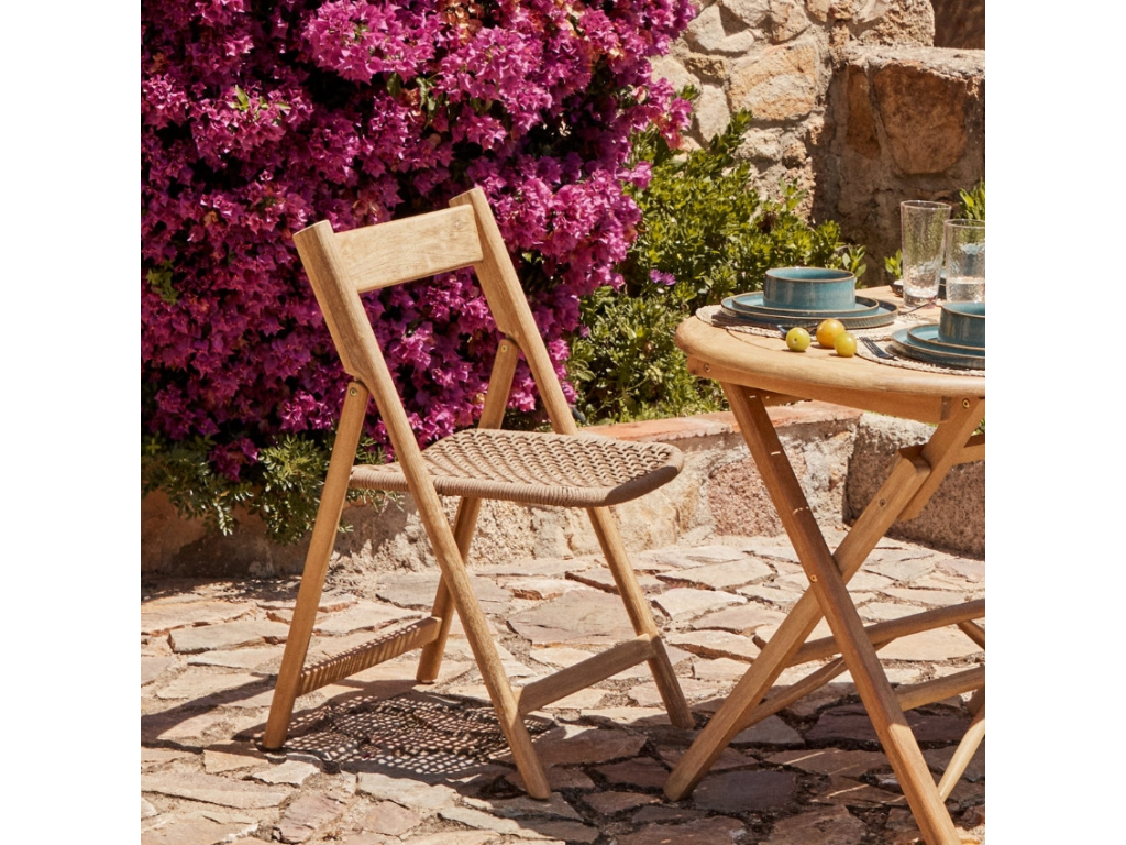 Série zahradního nábytku Kave Home Dandara dodá každému venkovnímu posezení eleganci a styl – tyto designové kousky rozhodně neuniknou pozornosti žádné vaší návštěvy. Najdete v ní lehátka, stolky i židle, takže celý prostor může být dokonale sladěn. Jídelní židle se pyšní masivní akátovou konstrukcí se sedákem z lanového výpletu. Akátové dřevo je opatřeno certifikací FSC, což znamená, že pochází z udržitelně a zodpovědně obhospodařovaných lesů. Židle navíc potěší možností kdykoliv ji snadno složit – zabere tak při uskladnění daleko méně místa. Spolu se stolem Dandara představuje ideální místo třeba pro snídani na čerstvém vzduchu, ať už na balkoně, terase nebo pod pergolou.