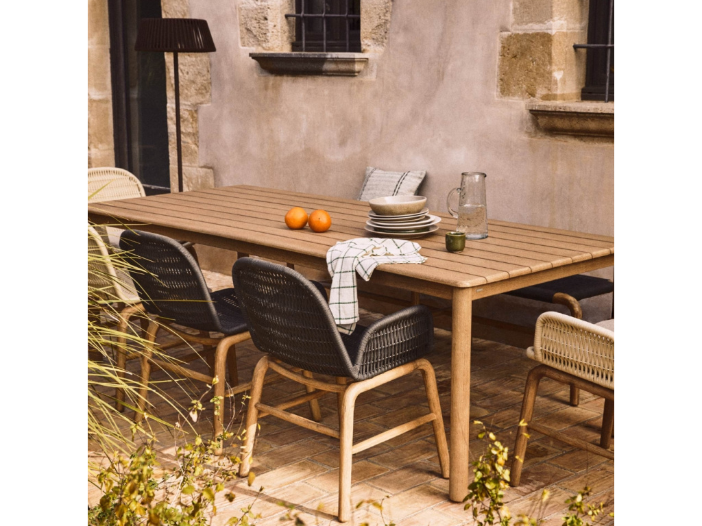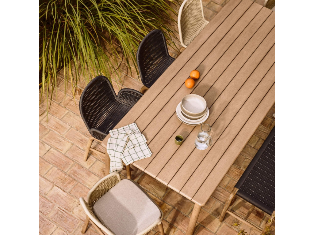 Zahradní židle Alipa v sobě nese hřejivost masivního akátového dřeva v kombinaci s lehkostí ručně tkaného výpletu v tmavě šedém tónu. Její subtilní silueta a čisté linie vnášejí do venkovních prostor nádech středomořské estetiky a organického designu. Díky odolným materiálům a nadčasovému zpracování vytvoří harmonické prostředí pro stolování na terasách laděných do přírodního nebo boho stylu.
