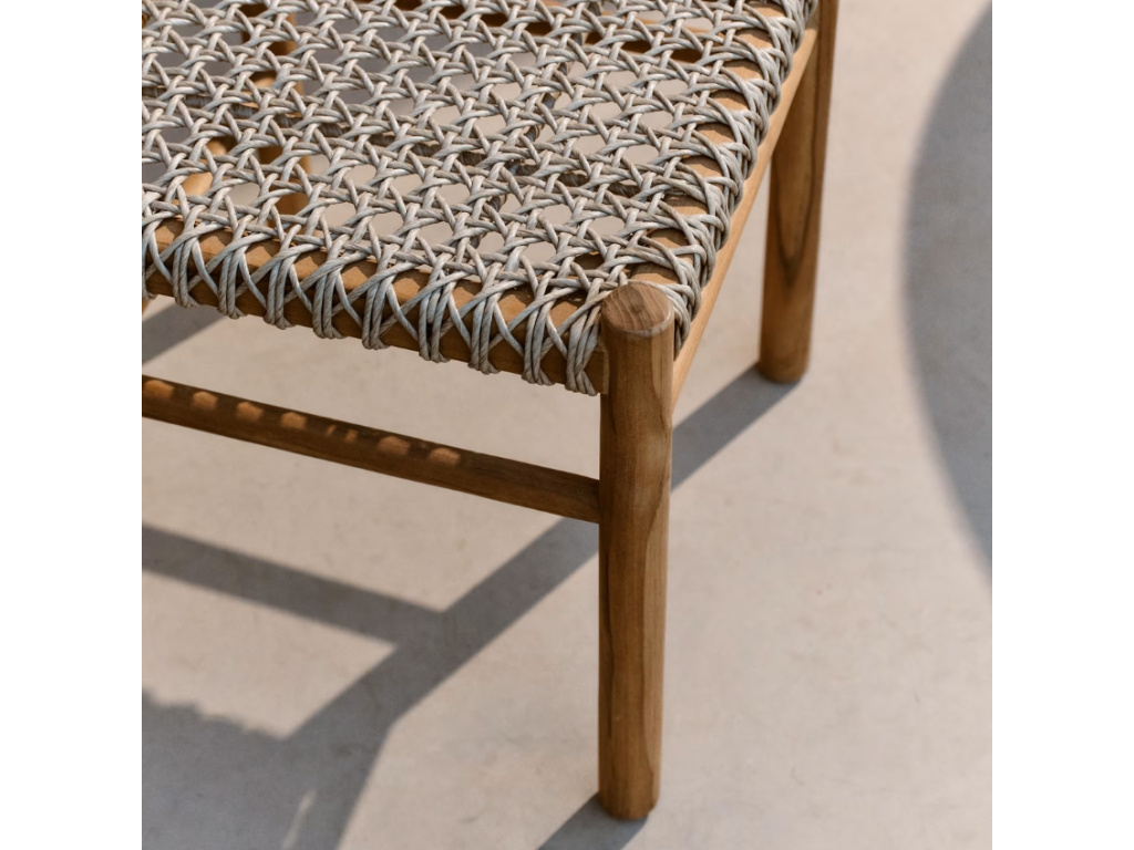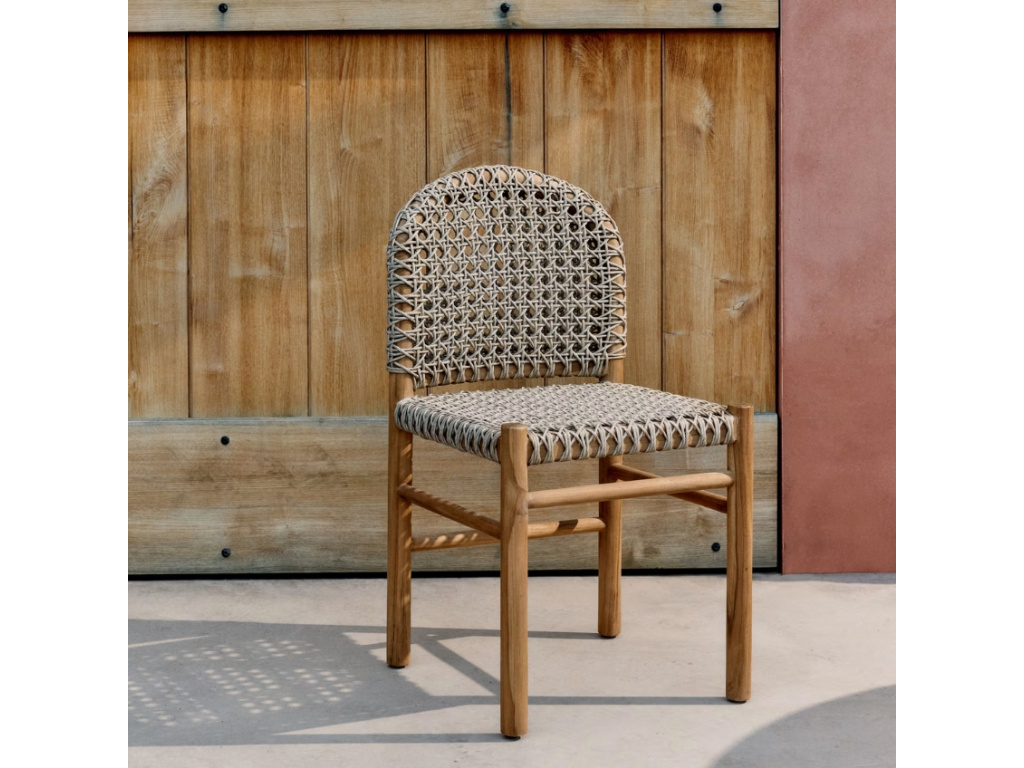 Přineste do svého venkovního posezení styl a eleganci s židlí Tavira, která mistrovsky kombinuje masivní teakové dřevo s jemnou propracovaností ručně tkaného umělého ratanu, odolného vůči UV záření. Každý kus se pyšní jedinečnými tóny a texturami teaku, který zajišťuje nejen vysokou odolnost vůči povětrnostním vlivům, ale i nadčasovou krásu. Ergonomicky tvarované sedadlo a opěradlo, pečlivě ručně tkané, poskytují maximální komfort a stabilitu – ideální pro dlouhé letní večery na terase či v zahradě. Díky svým kvalitním materiálům je židle Tavira vhodná jak pro venkovní, tak i vnitřní použití. Užijte si pohodlí a styl v jakémkoli prostředí s židlí Tavira – dokonalou harmonií přírody a moderního designu.