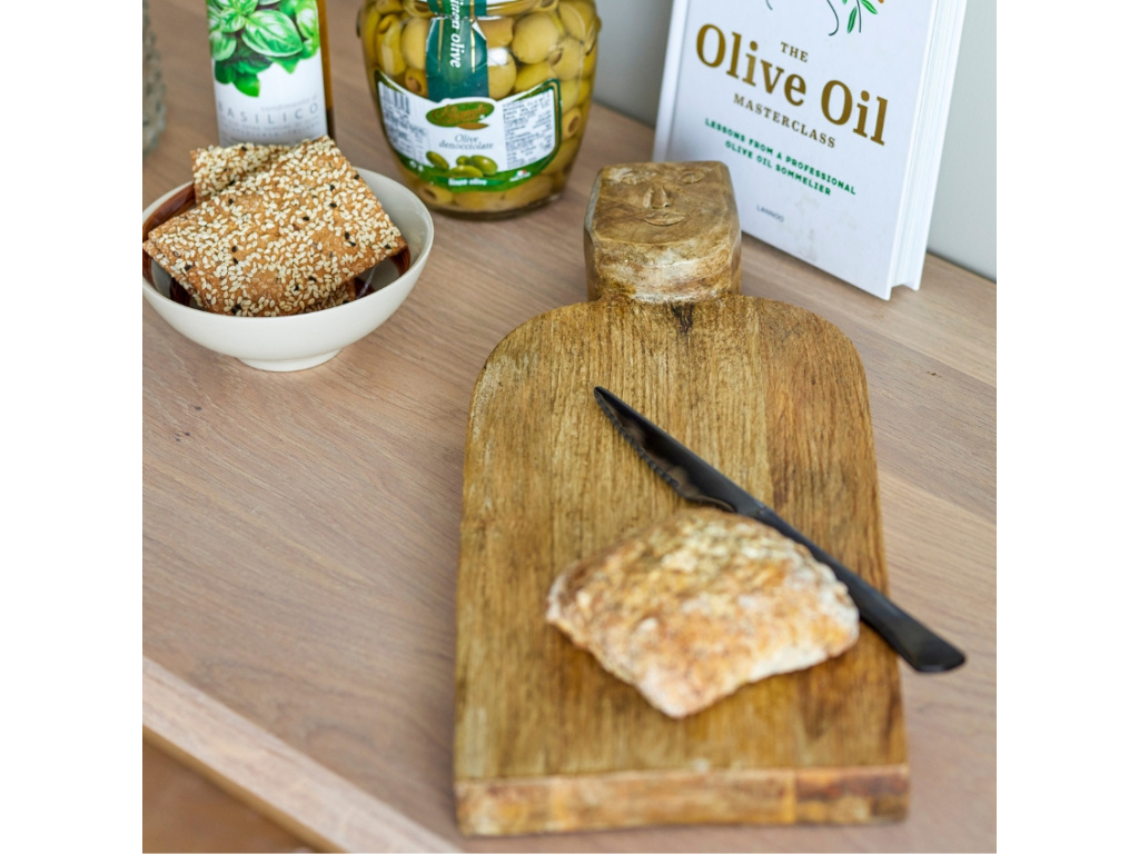Objevte kouzlo prkénka Brooklyn od Bloomingville z mangového dřeva. Tento unikátní kousek s ručně vyřezávaným motivem obličeje na rukojeti se stane nejen dekorativním prvkem na vašem jídelním stole, ale také praktickým pomocníkem při servírování. Díky ruční výrobě a charakteru přírodního dřeva je každé prkénko originál s jedinečnou kresbou a tvarem, což přinese vaší kuchyni osobitost a autentický rustikální šarm. Doplňte jej o prkénka ze stejné řady a získejte tak vyladěný set.