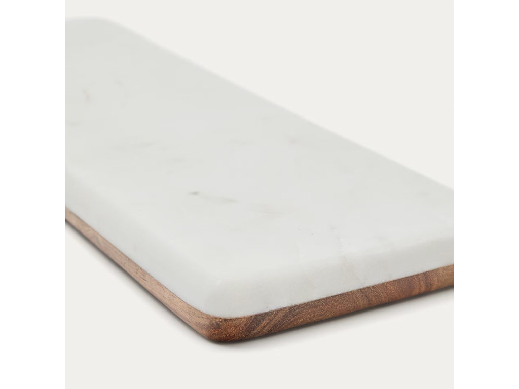 Pro gurmánské okamžiky je servírovací prkénko Kave Home Senna jako stvořené. Exkluzivní design představuje spojení masivního akátového dřeva a bílého mramoru. Jelikož se jedná o přírodní materiály, bude každý kousek jedinečný, s vlastními odstíny a texturami. Prkénko bude skvělým pomocníkem k podávání sýrů, ovoce a předkrmů. Naservírujte svým přátelům vaše oblíbené speciality a vyneste tak vaše stolování o úroveň výš.