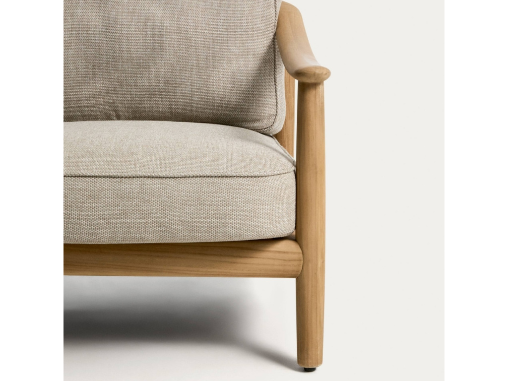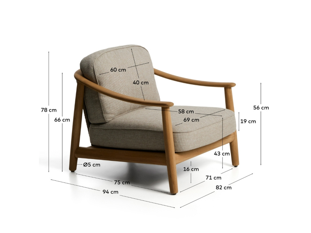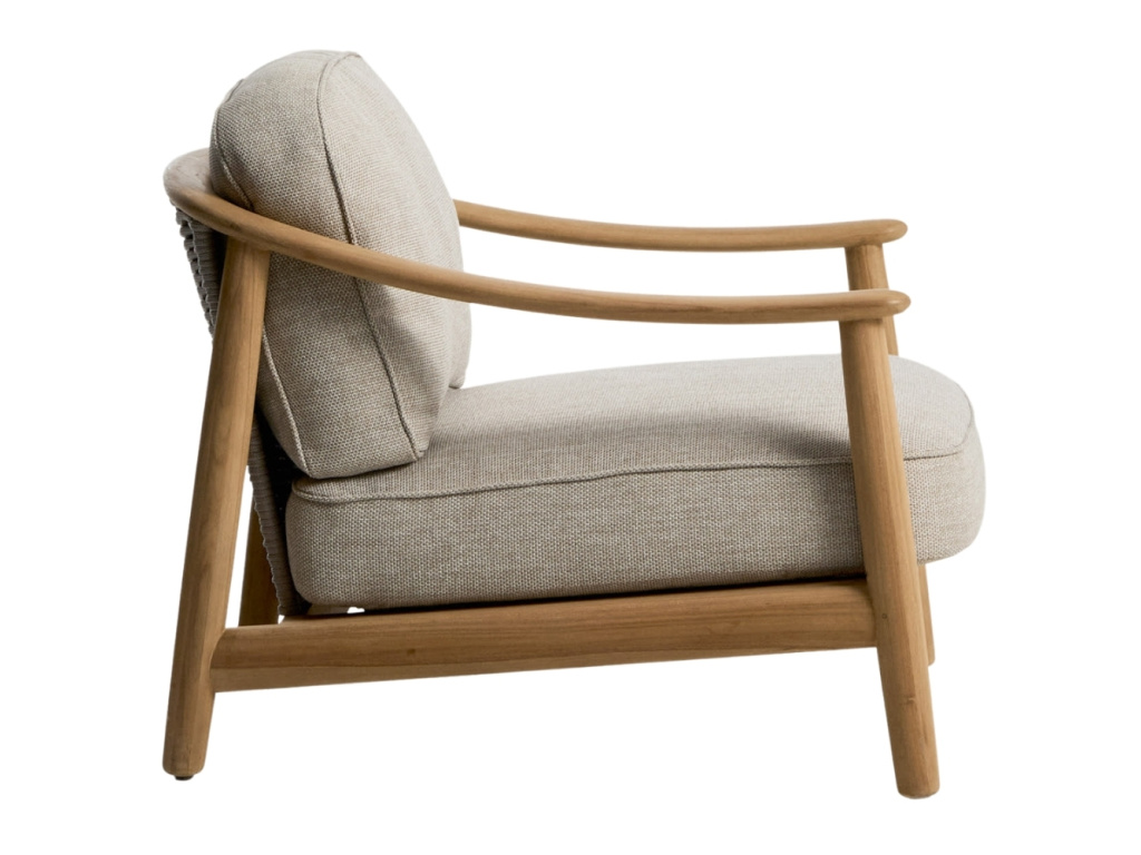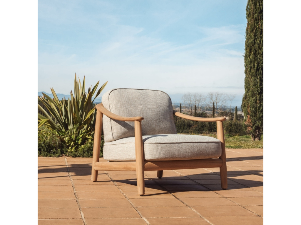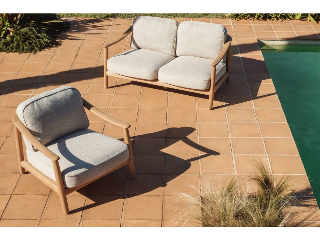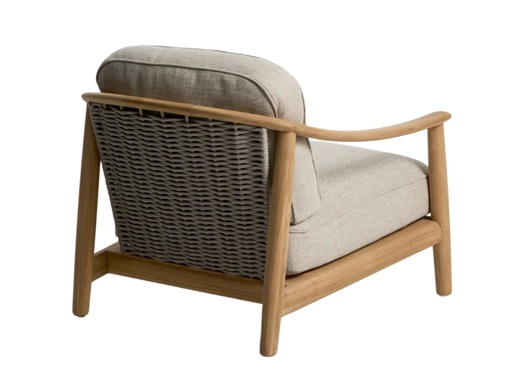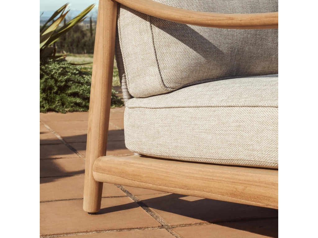 Zahradní křeslo Elunda spojuje přirozenou krásu masivního teakového dřeva s lehkostí ručně tkaného výpletu. Každý kus nese jedinečnou kresbu dřeva, která dodává prostoru autentický a hřejivý charakter. Opěradlo z ručně vyplétaného lana odolného vůči UV záření poskytuje pohodlnou oporu a zároveň přináší jemnou texturu a vzdušnost. Opěrný i sedací polštář disponují odnímatelnými potahy a jejich výplň je tvořena retikulovanou pěnou, která umožňuje průchod vody a podporuje rychlé schnutí. Křeslo Elunda je navrženo pro vytvoření útulných a harmonických venkovních prostor – doplnit ho můžete také židlemi nebo pohovkami ze stejnojmenné série.