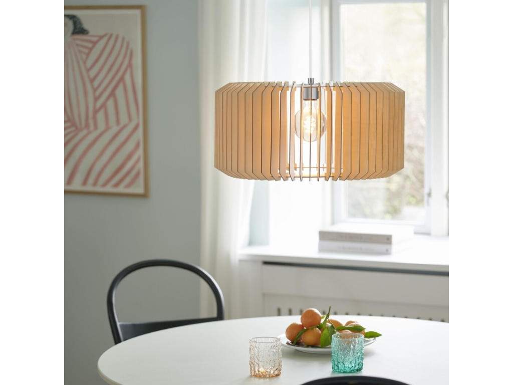 Dřevěné lamely závěsného světla Asti vytvářejí poutavý světelný efekt s fascinující hrou stínů. Přírodní materiál s FSC certifikací dodává svítidlu ekologický rozměr a přirozenou krásu. Světlo lze kombinovat s designovými žárovkami pro jedinečný vizuální dojem. Skvěle zapadne do interiérů inspirovaných přírodou, japandi stylem nebo moderním skandinávským minimalismem. Kolekce světel Asti nabízí dvě varianty.