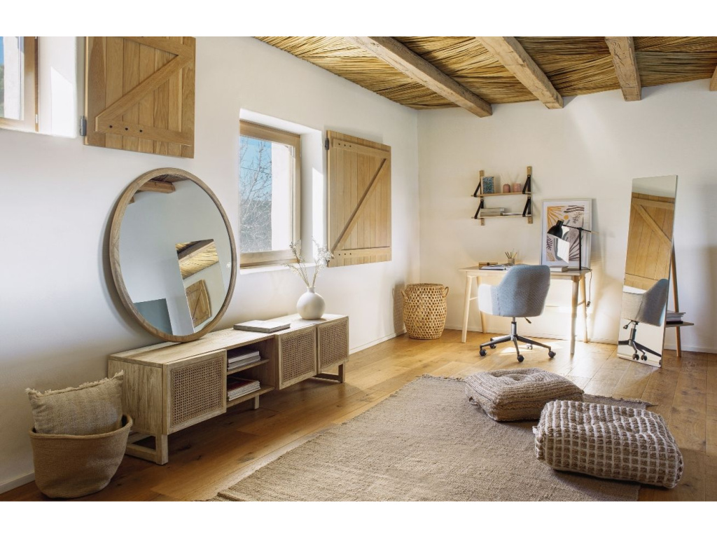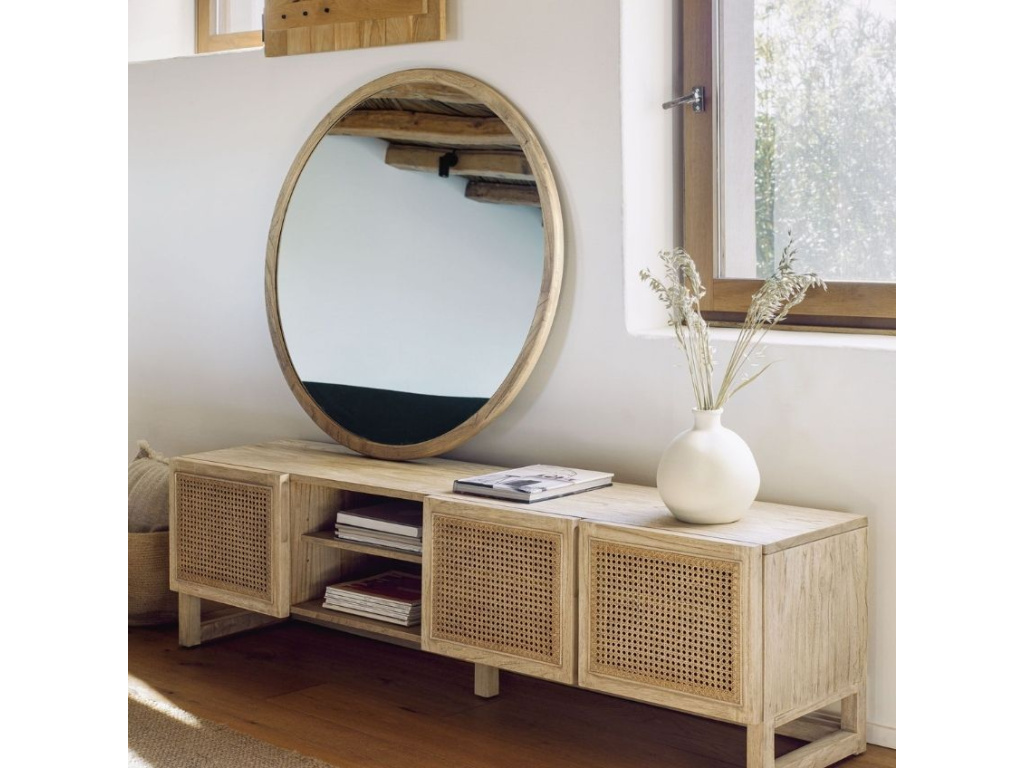 Zrcadlo Kave Home Alum s masivním rámem ze dřeva Mindi se hodí do každého interiéru, především do interiérů s dalšími přírodními prvky. Zrcadlo je možné zavěsit na zeď, perfektně také vypadá opřené o zeď na desce komody nebo toaletního stolku. Můžete ho mít ve třech různých velikostech.