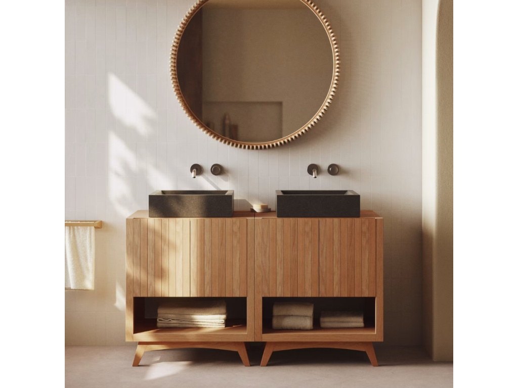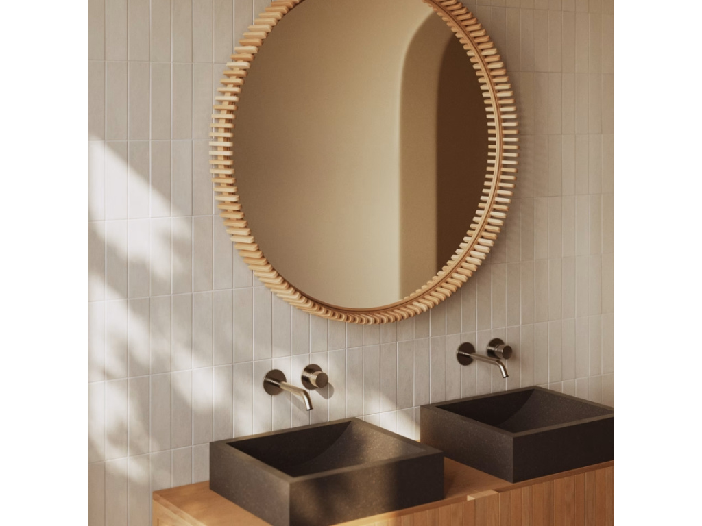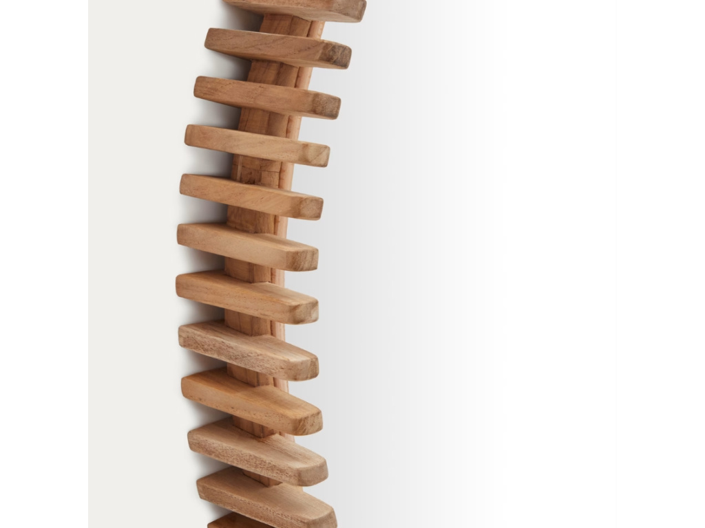 Kulaté zrcadlo Kave Home Polke zaujme svým originálně tvarovaným rámem tvořeným kousky teakového dřeva – skvěle se tak hodí do přírodně laděných interiérů. Zavěsit ho můžete třeba nad komodu v obývacím pokoji nebo nad postel v ložnici, vybraný prostor nejen ozdobí, ale také opticky zvětší. Díky jeho odolnosti vůči vlhkosti ho ale můžete bez obav využít také v koupelně. Dostupné je ve třech velikostech – v prostornějších interiérech je můžete na zdi nakombinovat a docílit tak ještě zajímavějšího doplňku interiéru.