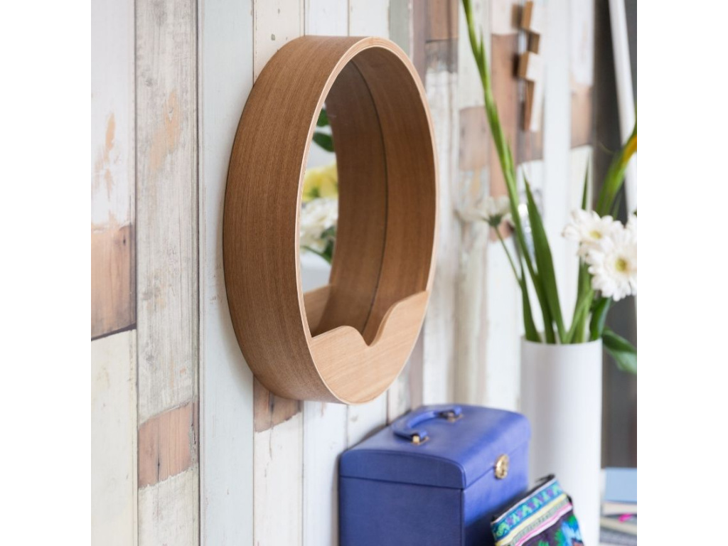 Elegantní závěsné zrcadlo ZUIVER ROUND WALL 60 cm obklopuje rám z dubové dýhy, který byl pokryt tenkou vrstvou laku pro dlouhé zachování přírodní barvy. Zrcadlo je navíc obohaceno o překližkový rám sloužící k zamezení pádu Vašich oblíbených věcí.