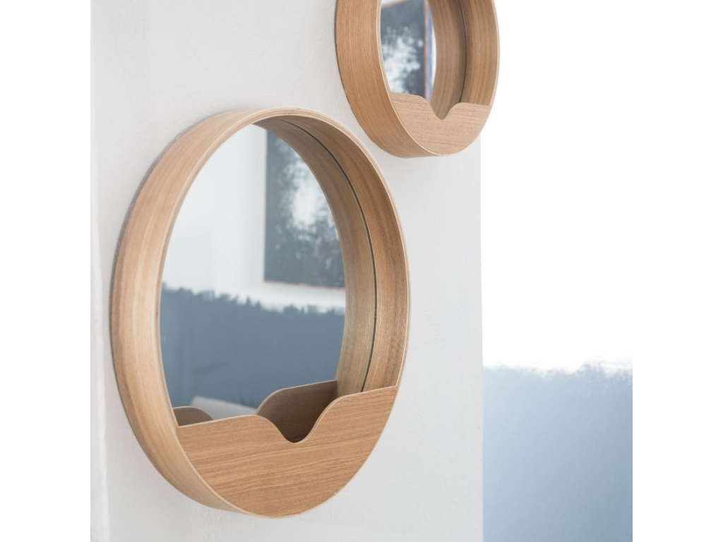 Elegantní závěsné zrcadlo ZUIVER ROUND WALL 40 cm obklopuje rám z dubové dýhy, který byl pokryt tenkou vrstvou laku pro dlouhé zachování přírodní barvy. Zrcadlo je navíc obohaceno o překližkový rám sloužící k zamezení pádu Vašich oblíbených věcí.