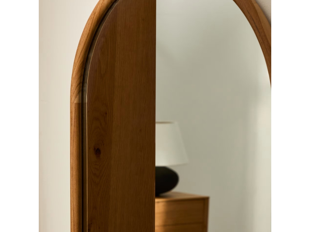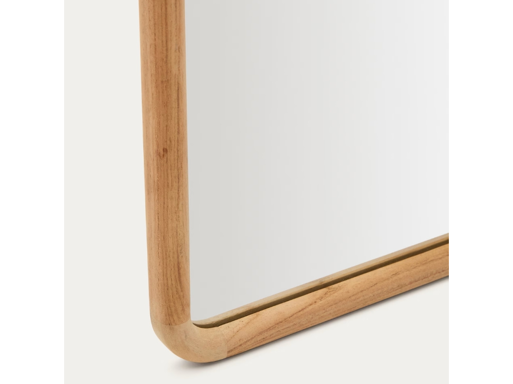Zrcadlo Milsa s rámem z masivního teakového dřeva přináší do interiéru kousek přírody v té nejautentičtější podobě. Každý kus je jedinečný díky přirozené kresbě a barevným odstínům dřeva, takže se stává originálním prvkem vašeho domova. Je ideální jak pro postavení na podlahu, tak pro zavěšení na stěnu – ať už v ložnici, šatně nebo předsíni. Teakové dřevo s certifikací FSC® 100 % pochází z odpovědných zdrojů, takže kromě stylu získáte i jistotu šetrnosti k životnímu prostředí. Díky minimalistickému designu se zrcadlo Milsa snadno kombinuje s různými styly interiérů – od moderního přes boho až po skandinávský. Je to praktický i estetický doplněk, který zútulní a opticky zvětší každý prostor.