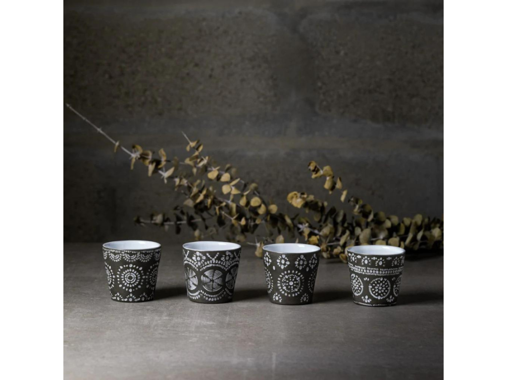 Sadu 8 šedých kameninových hrnků na espresso od značky COSTA NOVA ze série GRESPRESSO musí mít každý milovník výborné kávy. Šálky skvěle padnou do dlaně a při posezení vám prohřejí ruce i potěší oko. Svou kávu již nikdy nebudete hledat, váš hrnek ve vintage stylu na sebe vždy upoutá pozornost. Řada výrobků označená ECO GRES je unikátní tím, že až 90% jílů a glazur je recyklovaných a znovu použitelných k další výrobě.