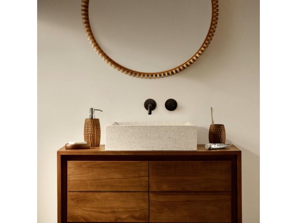 Fraz je série koupelnových doplňků, která přináší do vašeho interiéru krásu masivního dřeva a poctivost materiálu. Vyrobená z akátového dřeva s FSC certifikací, vyniká svou jemnou kresbou, teplým odstínem a nadčasovým designem, který se hodí do moderní i přírodně laděné koupelny. Série zahrnuje misku na mýdlo, dávkovač na tekuté mýdlo a stojan na zubní kartáčky – každý kus lze kombinovat do harmonického celku, který působí klidně a přirozeně. Skvěle vynikne samostatně, ale v sadě získá koupelna jednotný a stylový vzhled.