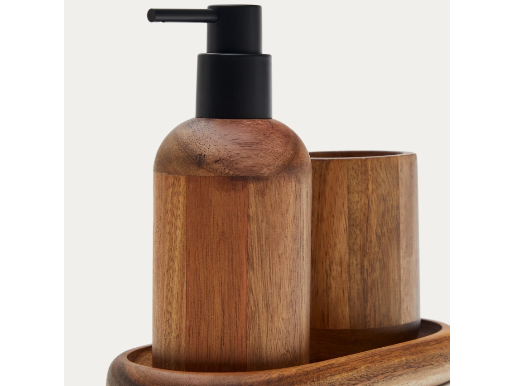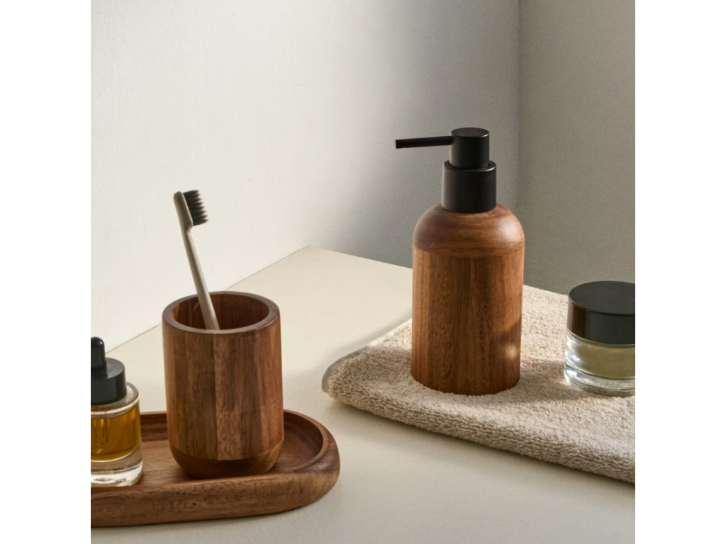 Zútulněte vaši koupelnu s příslušenstvím Kave Home Senda z masivního akátového dřeva. Stojánek na kartáčky, dávkovač na mýdlo i stylový tácek – to vše dokonale sladěné. Senda bude vaší umyvadlové skříňce rozhodně slušet! Může být také skvělým dárkem pro vaše blízké, kteří si právě zařizují nové bydlení nebo rekonstruují koupelnu.
