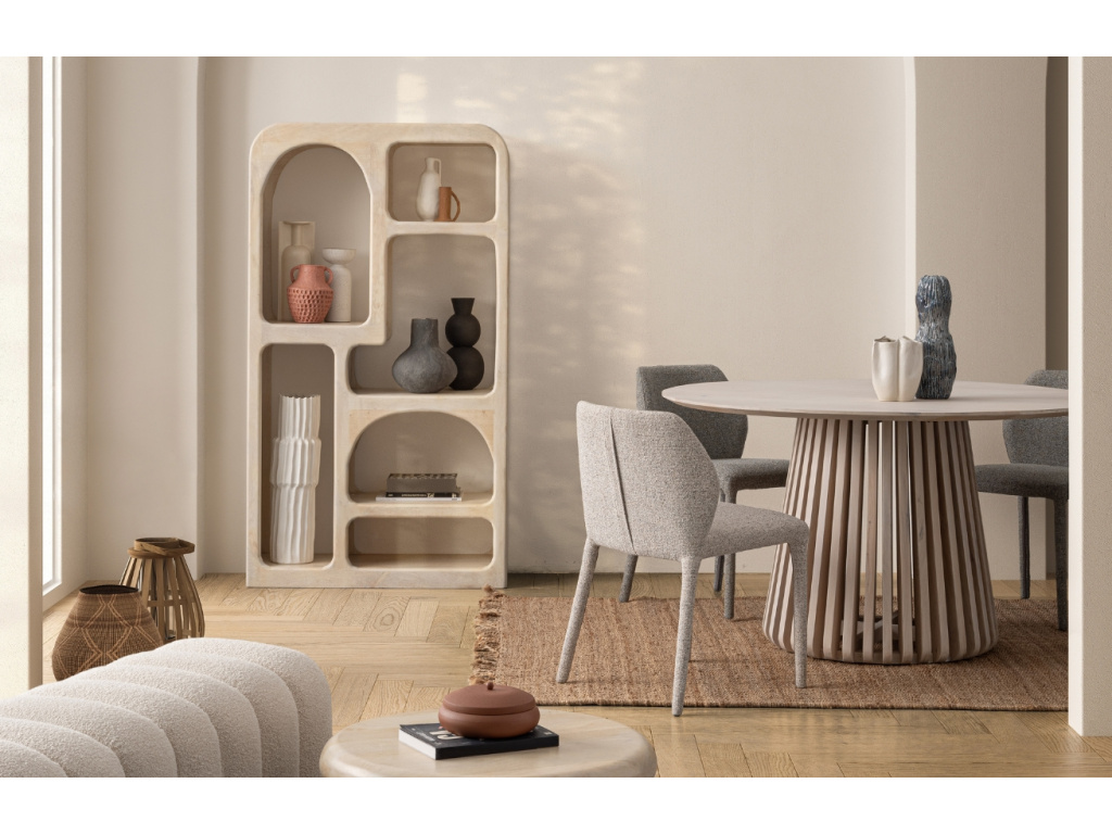 Ozvláštněte svou jídelnu nebo kuchyni jídelním stolem Odion od značky Bizzotto. Jeho zajímavě žebrovaná podnož dodává kulatému stolu jedinečný ráz. Podnož i deska jsou vyrobeny z mangového dřeva, které představuje jistotu vysoké životnosti a odolnosti vůči poškození. Je výbornou volbou do světlejších i barevnějších prostor ve skandinávském či rustikálním stylu. Stůl Odion nabízíme také v další barvě.