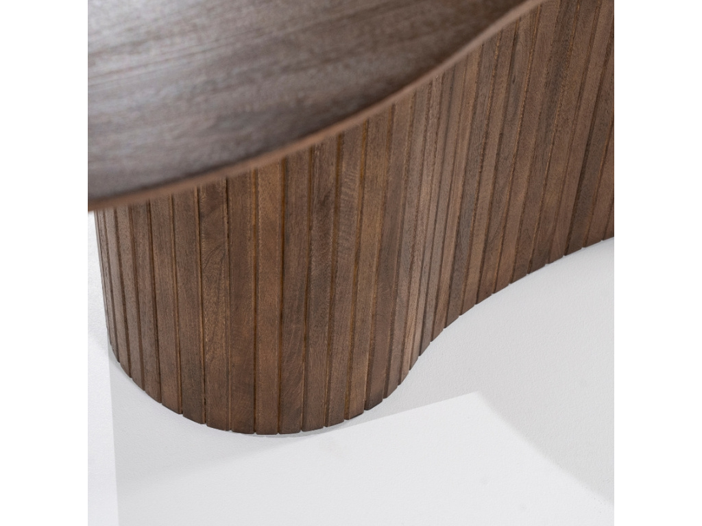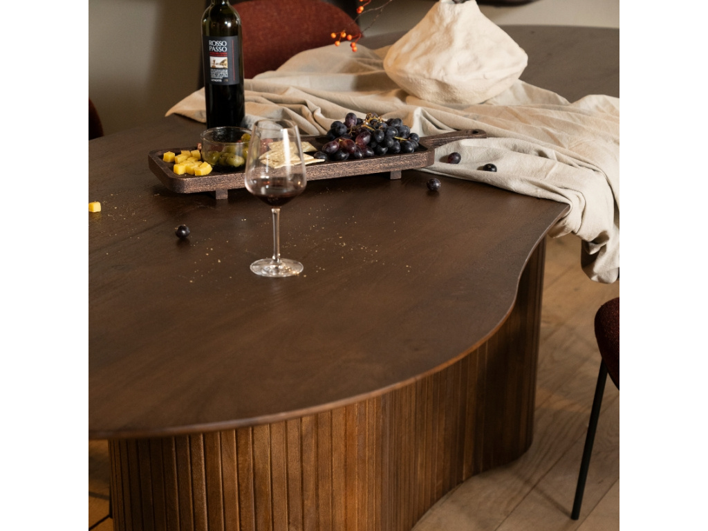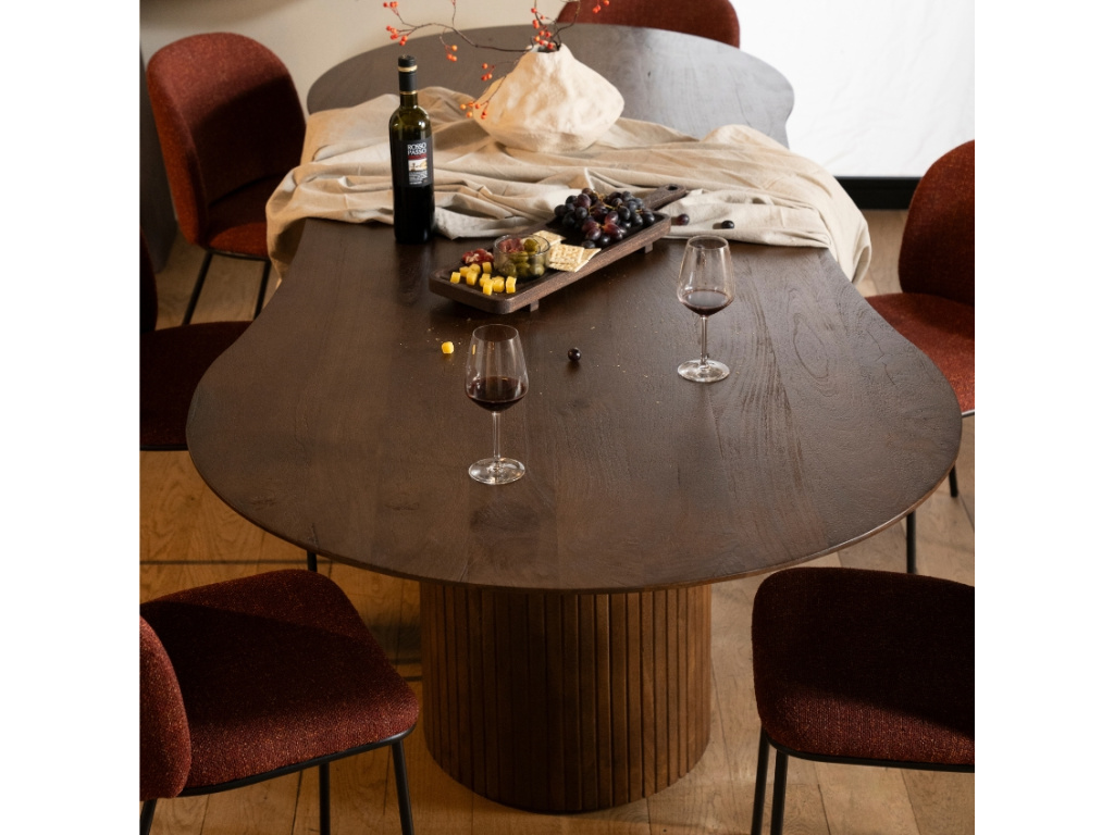 Nechte se unést organickými tvary designového jídelního stolu Jordy od značky Eleonora, který vás okouzlí svými křivkami, ale i kvalitním materiálem. Kolekce Jordy nabízí různě velké jídelní stoly či elegantní konferenční stolek. Stoly jsou vyrobeny z masivního mangového dřeva v hnědém odstínu, díky čemuž perfektně zapadnou do klasických i rustikálně laděných interiérů. Dřevěná podnož se skládá z jednotlivých pruhů dřeva, což stolu dodává jeho unikátní vzhled. Pozvěte přátele nebo uspořádejte rodinnou večeři a užijte si společné chvíle u této jedinečné designovky!
