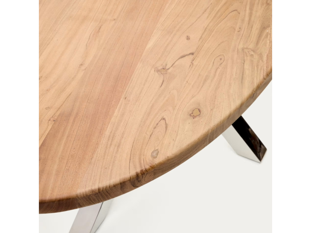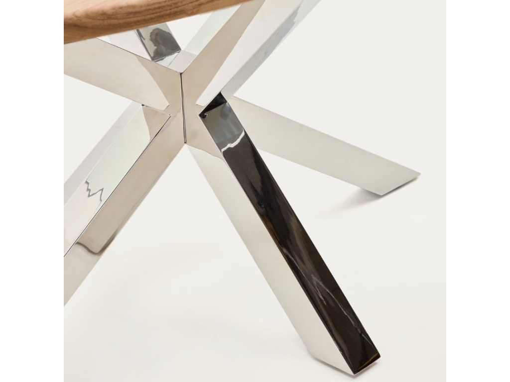 Krásný a nadčasový oválný jídelní stůl Kave Home Argo vás na první pohled zaujme svým originálním a propracovaným designem. Jeho podnož je vyrobena z nerezové oceli a má zajímavý tvar připomínající hvězdu. Zajišťuje perfektní stabilitu a navíc každého na první pohled zaujme. Desku tvoří masivní akátové dřevo, které se s podnoží skvěle doplňuje. Tento jídelní stůl se bude vyjímat zejména v rustikálních interiérech. Díky svým rozměrům je skvělou volbou zejména pro početnější rodiny.