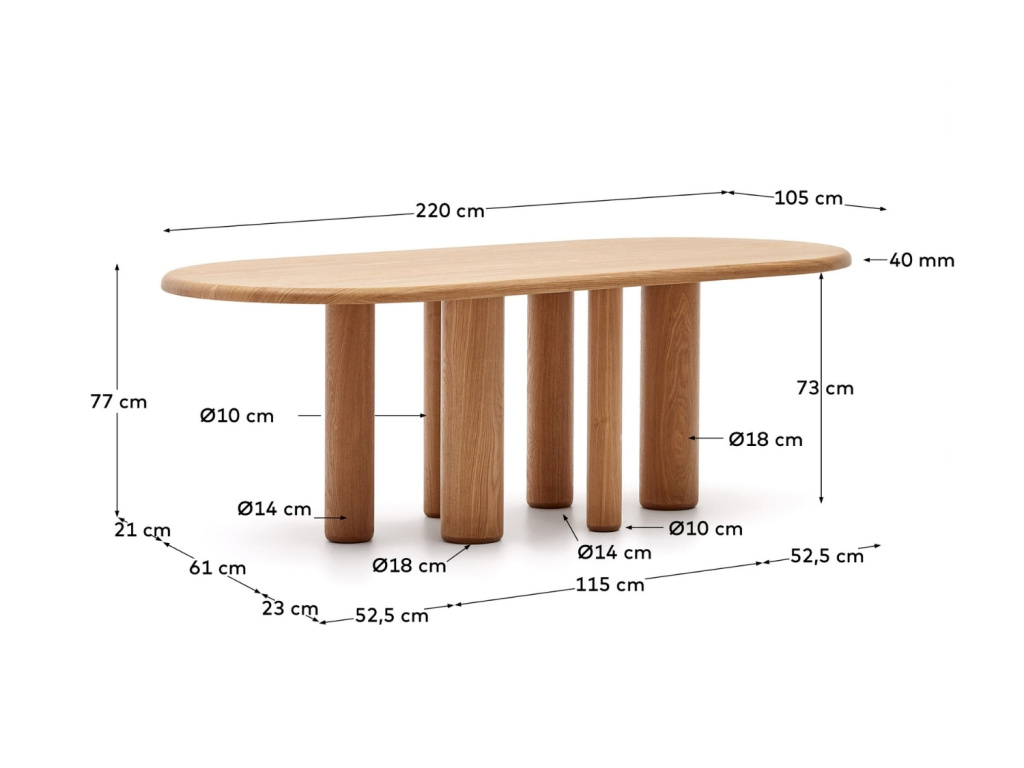 Jídelní stůl Mailen se pyšní prostornou oválnou deskou a výraznou podnoží o různých průměrech. Právě podnož z něj dělá opravdu zajímavý designový kousek, který se okamžitě stane chloubou vaší jídelny. Mailen pochází ze stejnojmenné kolekce nábytku, vytvořené týmem Kave Home, ve které najdete další kousky, které vám umožní dokonale sladit každý interiér. Navíc se řadí do série kolekcí s názvem ZEN BALANCE, která si zakládá na nadčasové eleganci v duchu minimalismu a dokonalé harmonii s přírodou. Mailen tak můžete doplnit i o dekorace a doplňky z této série kolekcí a vyšperkovat tak váš domov k dokonalosti.