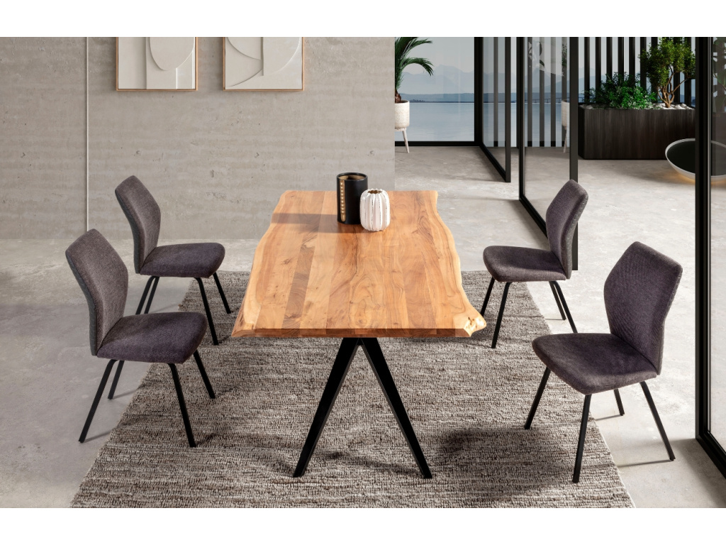 Jídelní stůl Mudri od značky Marckeric poutá svým robustním vzhledem. Atraktivní deska stolu je vyrobena z akáciového dřeva a pyšní se originálním, nepravidelným tvarem, který stolu dodává na atraktivitě. Robustní kovová podnož působí velice ladně a vzdušně. Dolaďte svůj interiér k dokonalosti s jídelním stolem Mudri a užijte si stolování s vaší rodinou nebo přáteli.