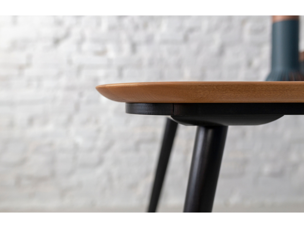 Jídelní stůl RAGABA CONTRAST představuje kombinaci funkčnosti a minimalismu. Vyznačuje se jednoduchou konstrukcí, která vám poskytne dostatek prostoru a pohodlí. Lehce zkosená deska stolu zvýrazňuje jeho jedinečný design a dokonale ladí s vysokou štíhlou podnoží. Již na první pohled vás upoutá výrazná kresba dřeva na desce, která je vyrobena z jasanového masivu. Ze stejného materiálu je vyrobena také černě lakovaná podnož, kontrastující s přírodními odstíny desky. Stůl perfektně zapadne do moderních interiérů v minimalistickém stylu, ale skvěle vynikne i v interiéru ve stylu vintage.