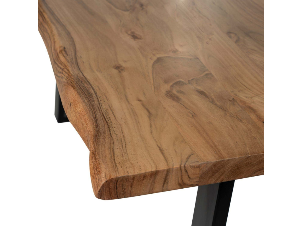 Nadčasový jídelní stůl Laban od značky Somcasa se stane dominantou vaší jídelny. Pyšní se masivní deskou z akátového dřeva, která vnese do vašeho interiéru kousek přírody. Deska je opatřena ochranným transparentním lakem, díky němuž se můžete kochat přirozenou strukturou dřeva. Stabilitu stolu zajišťuje minimalistická kovová podnož v černé barvě, která zaujme zajímavým propojením nohou podnože. Stůl Laban bude skvělým útočištěm pro rodinná a společenská setkání, ať už v rustikálních či vintage stylech interiérů. V nabídce je také ve větším rozměru.