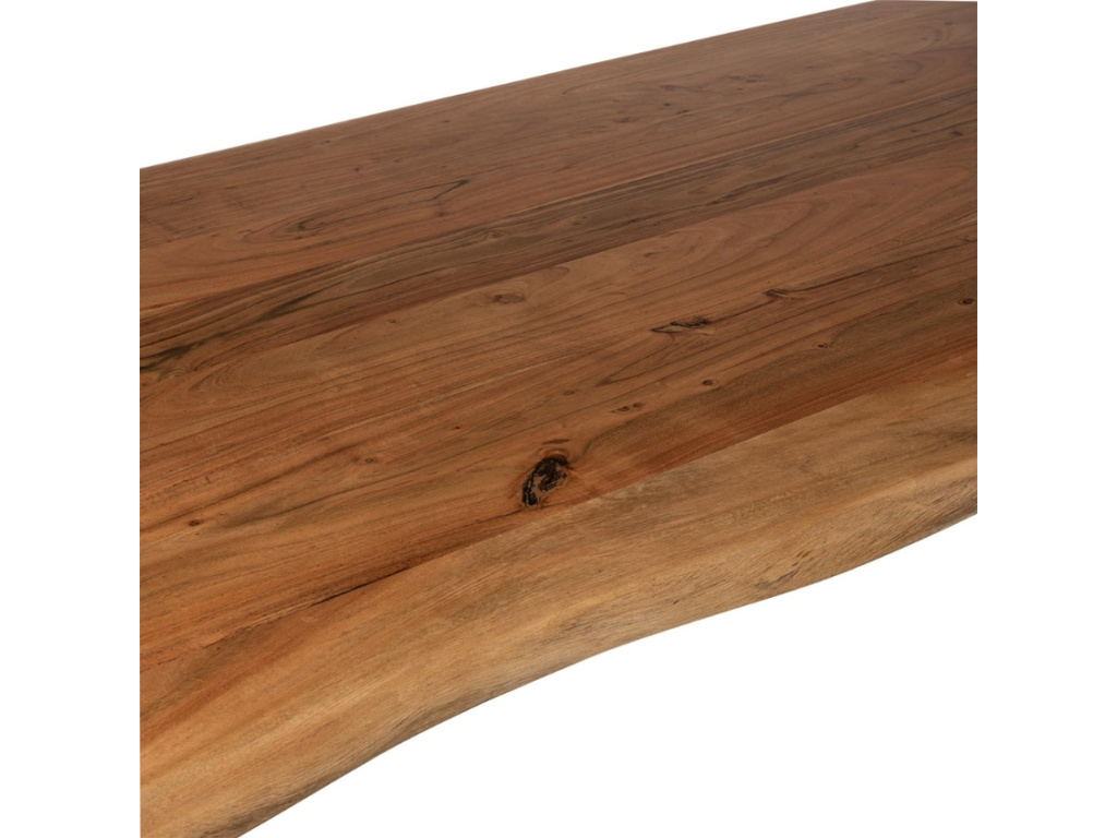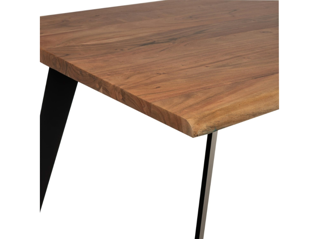 Nadčasový jídelní stůl Mitul od značky Somcasa se stane dominantou vaší jídelny. Disponuje masivní deskou z akátového dřeva, která vnese do vašeho interiéru kousek přírody. Deska je opatřena ochranným lakem – díky jeho transparentnosti se můžete kochat nádhernou strukturou dřeva. Stabilitu stolu zajišťuje minimalistická kovová podnož v černé barvě, která stolu dodává na eleganci. Stůl v rustikálním stylu bude skvělým útočištěm pro rodinná a společenská setkání, ať už to bude v moderním či klasicky laděném interiéru. V nabídce je také v menším rozměru.