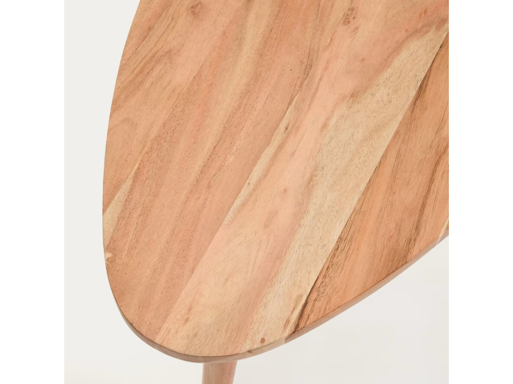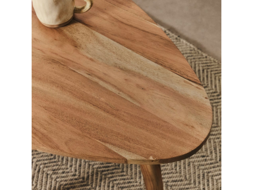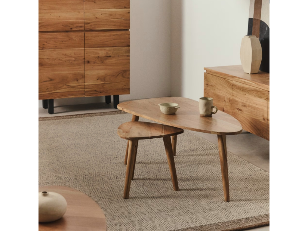 Vneste do svého interiéru teplo a charakter s konferenčním stolkem Duvani. Tento stylový kousek z masivního akátového dřeva je dokonalou kombinací přírodního vzhledu a moderního designu. Jemné tóny dřeva zvýrazňují přirozenou strukturu a dodávají každému kusu jedinečný vzhled. Stolek můžete doplnit také setem menších odkládacích stolků a dokonale tak sladit váš obývací prostor. Duvani není jen praktický doplněk, ale stylový prvek, který dodá vašemu prostoru uvolněnou a svěží atmosféru.
