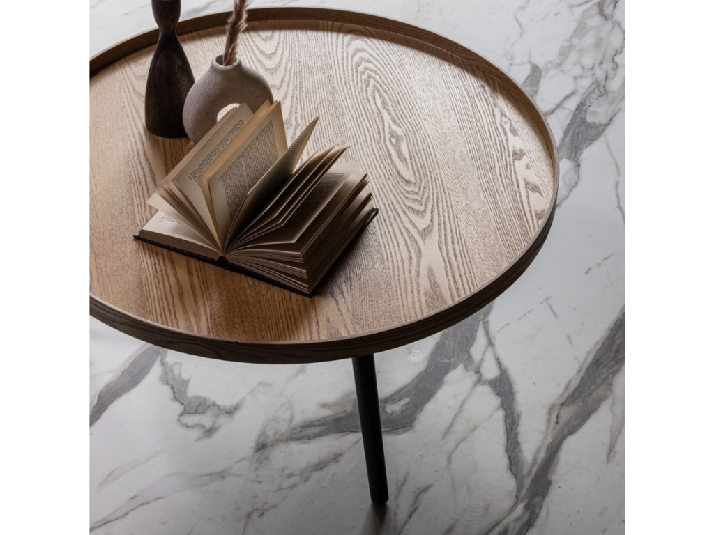 Konferenční stolek Mireli zaujme svým kvalitním provedením, který evokuje oblíbený retro design. Deska stolku je z borovicové dýhy v přírodním odstínu a má stylové, mírně vyvýšené hrany. Podnož je z černě lakovaného dřeva. V naší nabídce jsou také konferenční stolky Mireli v černém a béžovém provedení s třemi velikostmi desky – skvěle spolu ladí a snadno se kombinují!