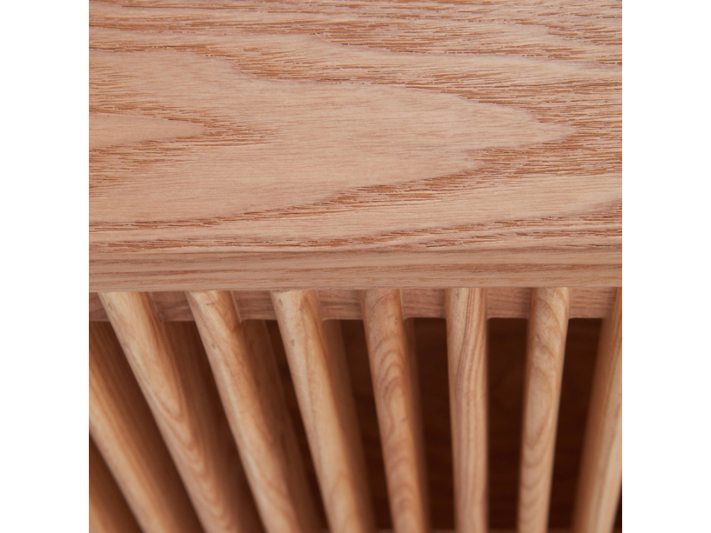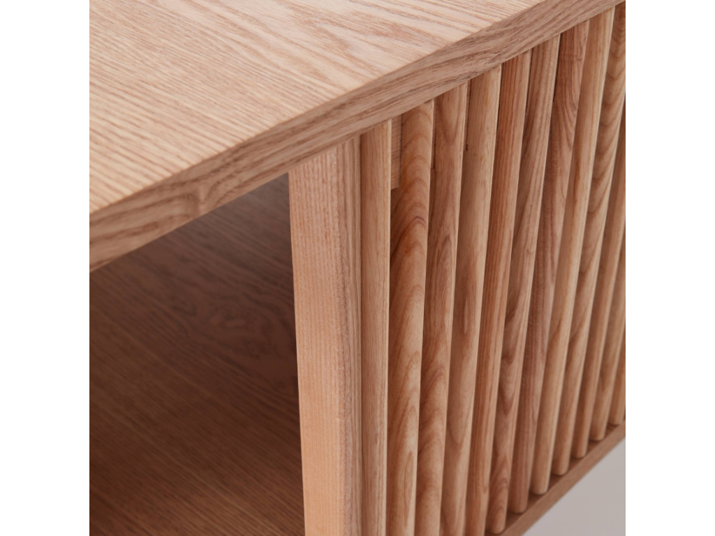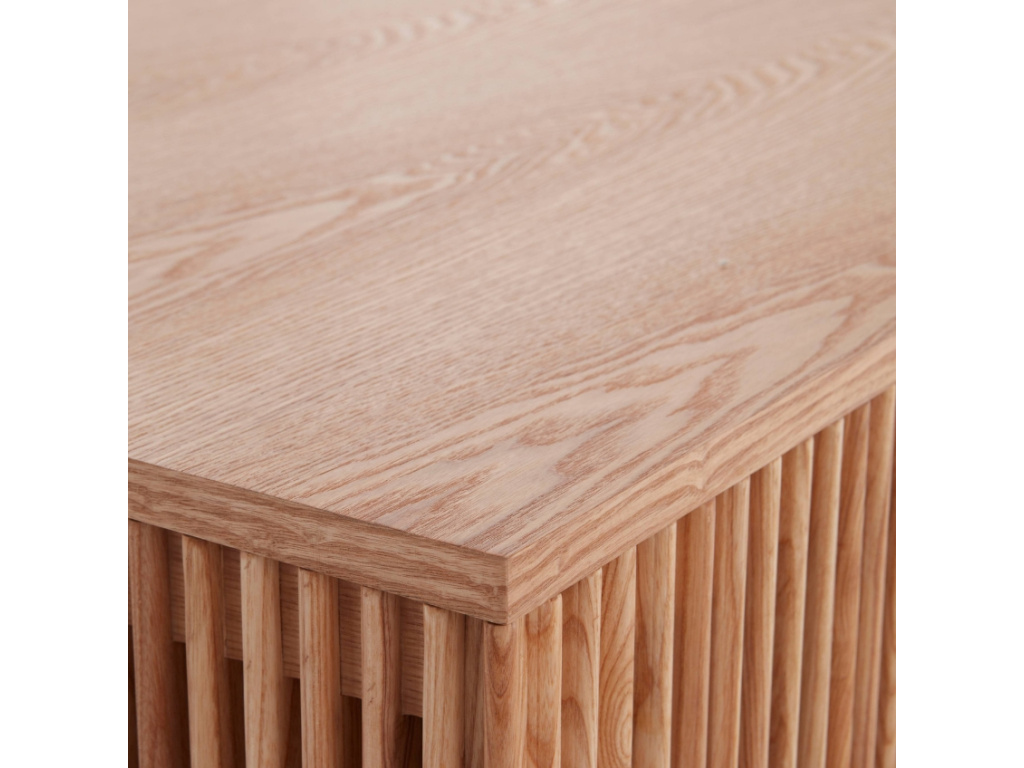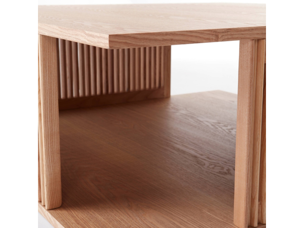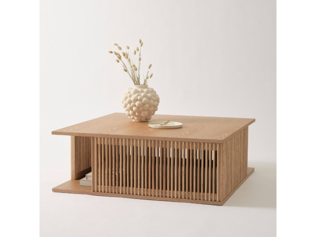 Stolek SION je dokonalým ztělesněním přírodního skandinávského stylu s jemným retro nádechem. Čtvercový konferenční stolek je ozvláštněn elegantními vertikálními lamelami, které obepínají jeho obvod – jejich zaoblený tvar přispívá k celkovému harmonickému a elegantnímu dojmu. Díky prostoru mezi lamelami působí stolek lehce průhledně, což dodává interiéru vzdušnost. Praktickým prvkem jsou pak otvory na každé straně stolku, které umožňují snadný přístup k úložnému prostoru pod jeho deskou. Ten můžete využít třeba k odložení knih a časopisů, které chcete mít po ruce. Bude také Ideálním místem k uschování hřejivého plédu!
