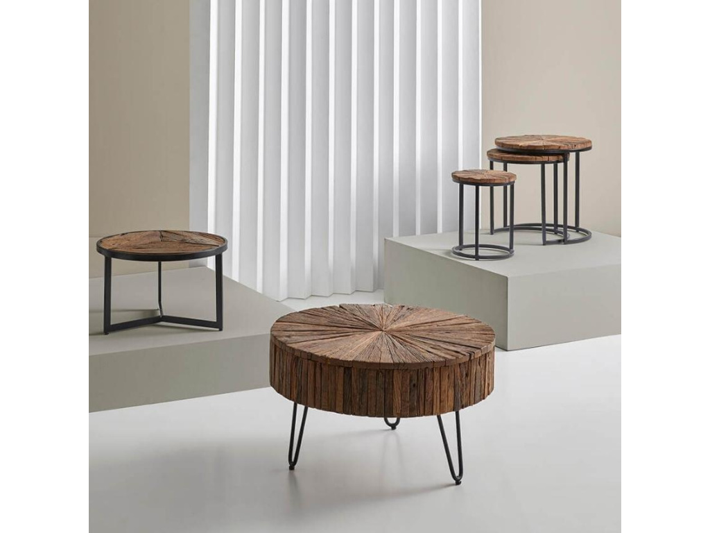 Konferenční stolek Somcasa Tarak z recyklovaného dřeva je jedinečným kouskem do každého interiéru. Osvěží vzhled každého prostoru, díky své mohutné konstrukci je nepřehlédnutelný a velice stabilní. Je jasnou volbou pro osobité obývací pokoje i společenské místnosti. Matně lakovaná kovová podnož je krásným detailem, který doplňuje celý vzhled produktu.