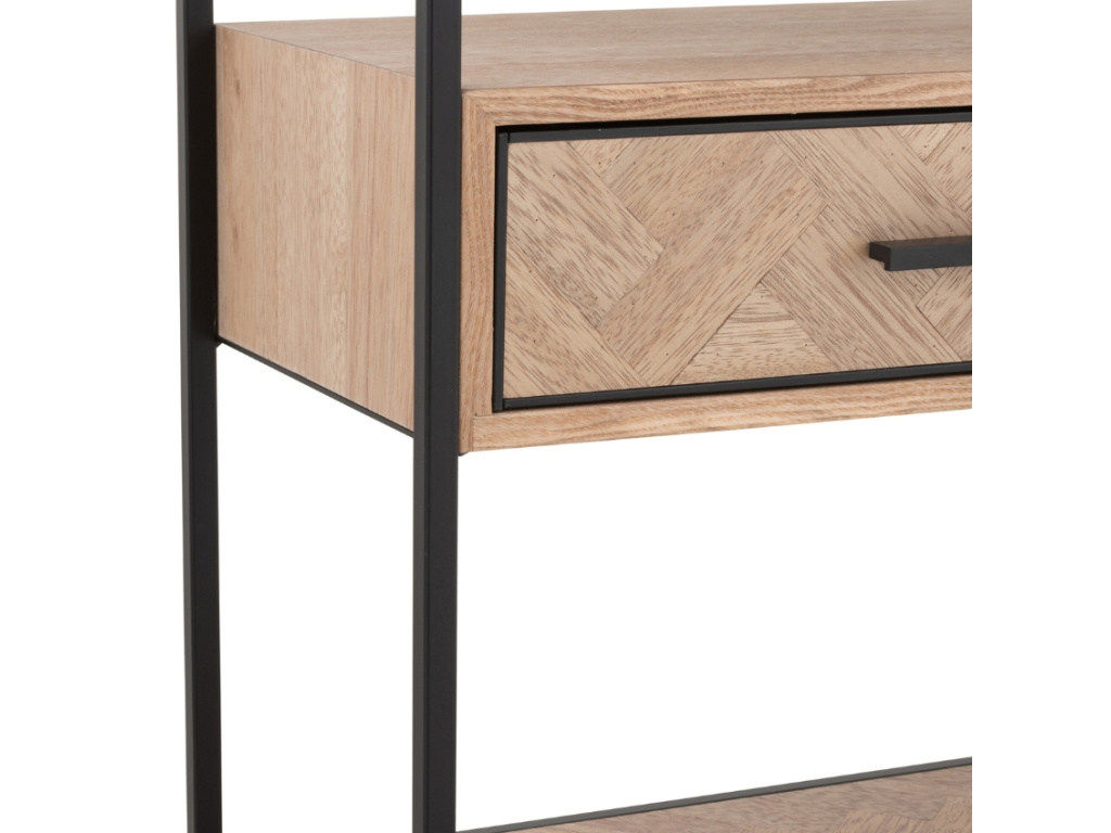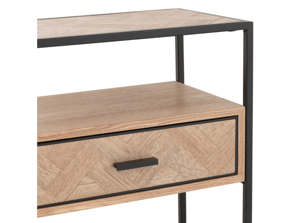 Moderní noční stolek Zigtem bude nádherným doplňkem vašeho domova. Podnož a konstrukce jsou vyrobeny z černě lakovaného kovu, který skvěle koresponduje s deskami a policí z masivního dřeva. Noční stolek Zigtem se hodí především do moderních interiérů s nádechem industriálního stylu a skvěle se bude vyjímat i ve skandinávsky laděných interiérech.