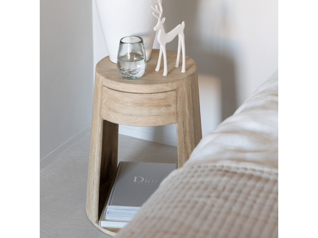 Odkládací stolek Colis od belgické značky J-line zaujme pozornost díky svému minimalistickému a funkčnímu tvaru. Je vyroben z mangového dřeva, které fantasticky doplní rustikální či minimalistické interiéry. Prostorný úložný prostor v podobě otevřené police a výsuvné zásuvky pojme knihy i různé dekorační předměty. Lze ho umístit vedle křesla i postele. Stolek Colis nabízíme i v další barvě.