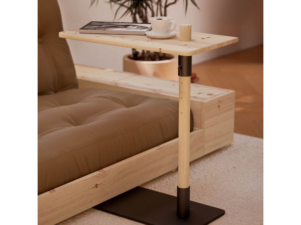 Dřevěný odkládací stolek Sticks od značky Karup Design v sobě spojuje jednoduchost a klasický design. Pevná základna odkládacího stolku zajišťuje vynikající stabilitu, zatímco lehká konstrukce umožňuje stolek snadno přemisťovat. Stolní deska má rozměry 55 x 30 cm a nabízí mnoho využití – perfektně poslouží jako noční stolek v ložnici nebo u pohovky jako místo na odkládání kávy či knihy. S pěti nastavitelnými výškami se stolek Adjust snadno přizpůsobí vašim potřebám a zapadne do každého prostoru. Odkládací stolek je vyroben z borovice s certifikací FSC a práškově lakované oceli. Design vytvořila renomovaná dánská architektonická kancelář C.F. Møller Architects.