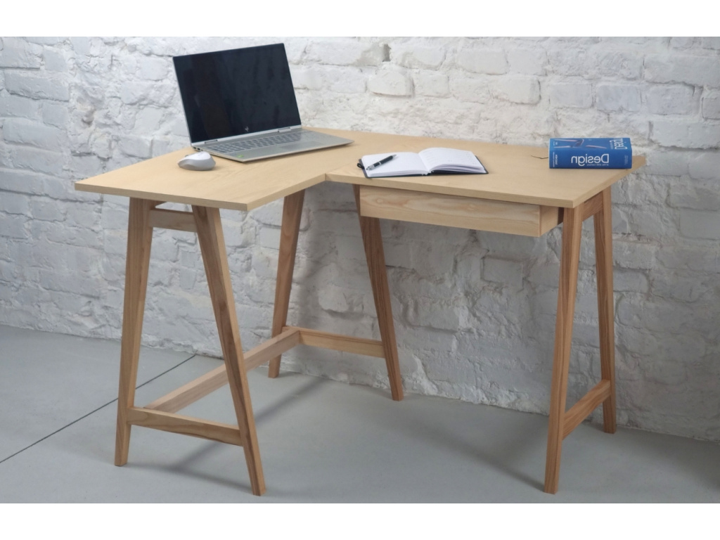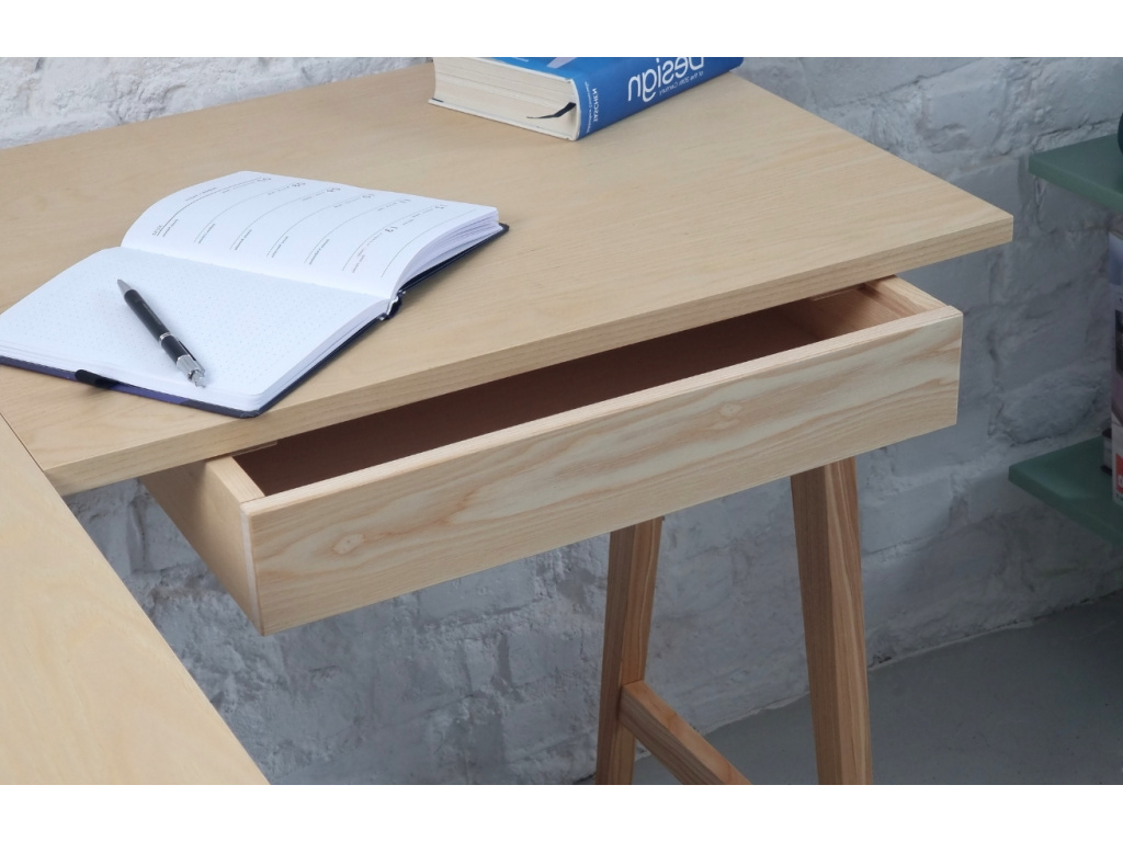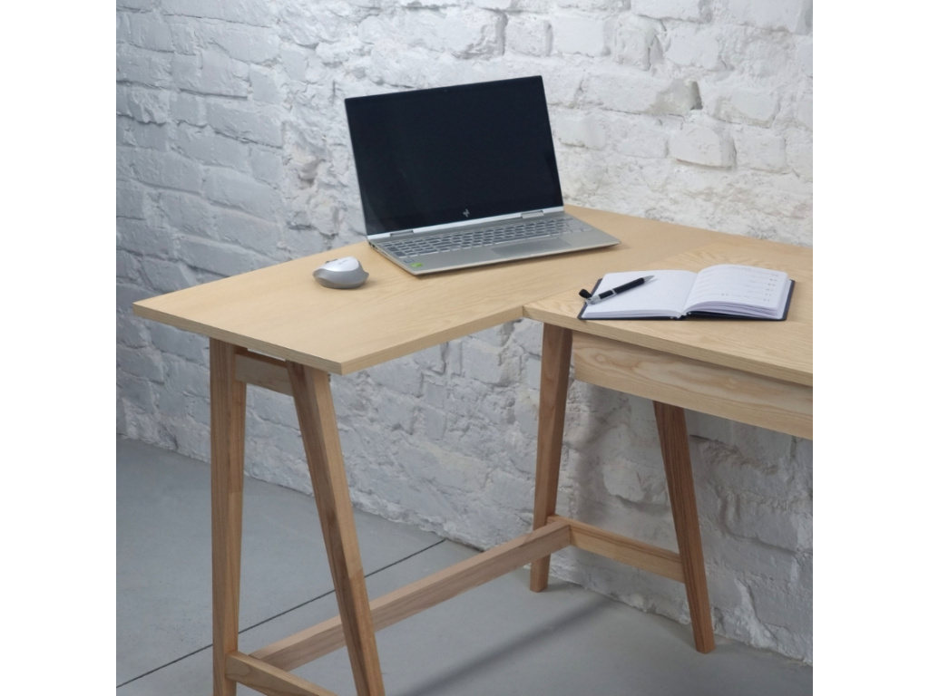 Hledáte-li do vaší pracovny rohový stůl ve skandinávském designu, je RAGABA LUKA právě pro vás. Stůl ve tvaru L je sestaven ze dvou obdélníkových stolů usazených na podnoži, vyrobené z masivního jasanového dřeva, stejně tak jako deska. Jednoduchá zásuvka vám zajistí praktické úložiště na všechny vaše potřebné věci. Díky rohovému tvaru vám stůl nabídne pohodlí i dostatečný prostor při práci. Uspořádání věcí a kancelářských potřeb tak bude o mnoho snazší. LUKA bude perfektním designovým kouskem do vaší pracovny, ale využití najde také v dětském nebo i studentském pokoji.