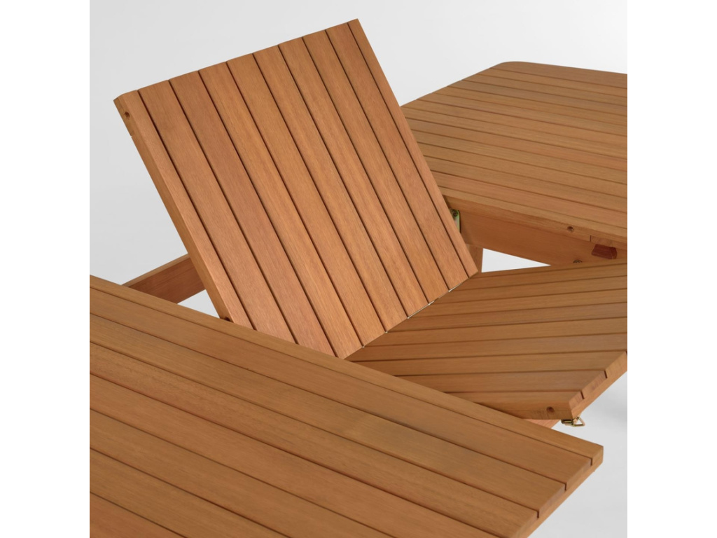 Rozkládací zahradní stůl Kave Home Hanzel z masivního eukalyptového dřeva je moderní stůl, který velmi dobře doplní každou zahradu. Díky možnosti stůl rozložit, snadno pohostíte libovolný počet strávníků. Díky tomuto stolu budou chvíle na vaší zahradě výjimečné. Doplnit jej můžete zahradními židlemi ze stejnojmenné série.