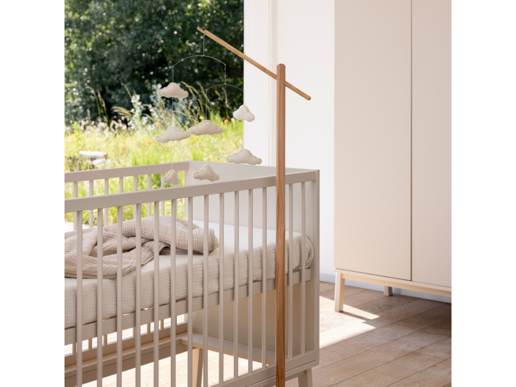 Dřevěný stojan Mobile od značky Quax bude praktickým pomocníkem k dětské postýlce nebo ohrádce. Stojan je vyrobený z březové a topolové překližky a je zajištěn stabilní dřevěnou základnou. Na stojan můžete zavěsit jakoukoliv dekoraci nad dětskou postýlku nebo jednu z dekorací ze stejnojmenné kolekce. Vaše děťátko je bude bavit pozorovat a zároveň tak zlepšovat jeho pozornost.