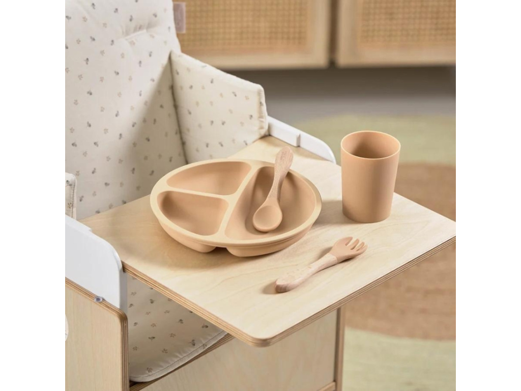 Dřevěný tác Kave Home Nuun je praktickým doplňkem pro dětskou židli ze stejnojmenné série. Kombinace židličky s tácem představuje designový a zároveň multifunkční kousek, který pomůže vašemu dítěti v různých fázích vývoje. Tác může snadno posloužit jako stolek, u kterého si děti v klidu vychutnají své pokrmy nebo si na něm mohou třeba kreslit a vybarvovat. Využijte i jiné prvky z kolekce Nuun a sestavte si tak židličku dle svého gusta.
