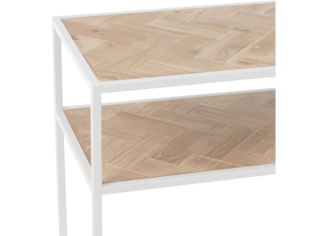 Moderní toaletní stolek Zigtem bude nádherným doplňkem vašeho domova. Podnož a konstrukce jsou vyrobeny z bíle lakovaného kovu, který skvěle koresponduje s horní deskou i policí ze dřeva. Toaletní stolek Zigtem se hodí především do moderních interiérů s nádechem industriálního stylu a sloužit může v předsíni, ložnici i obývacím pokoji.