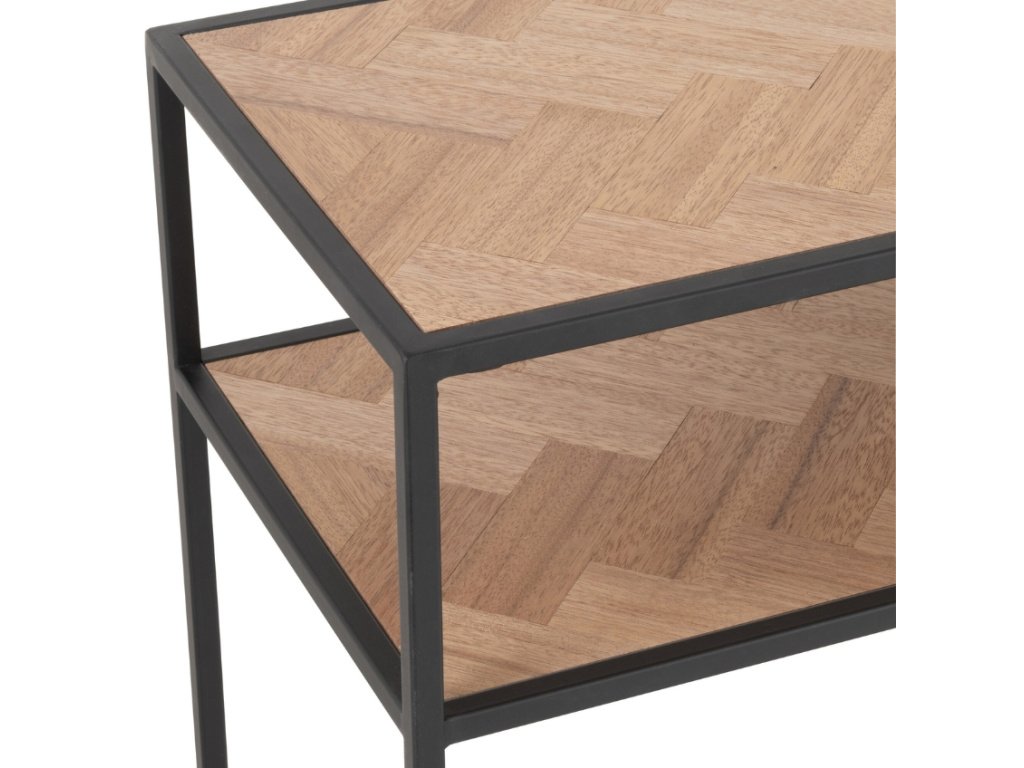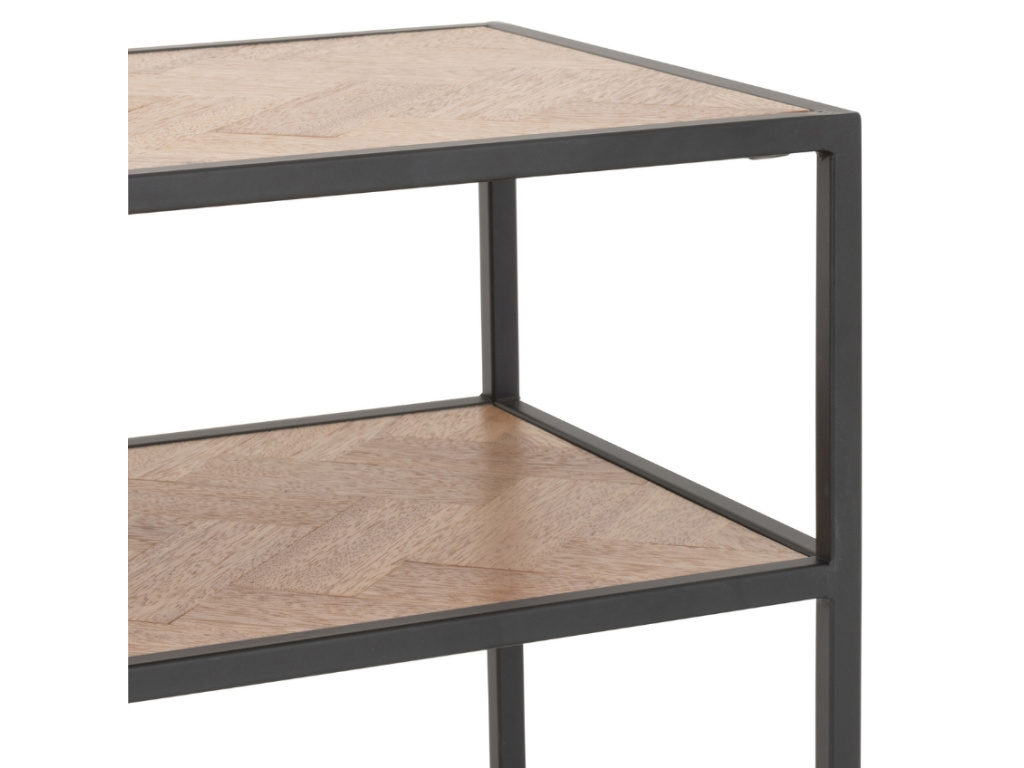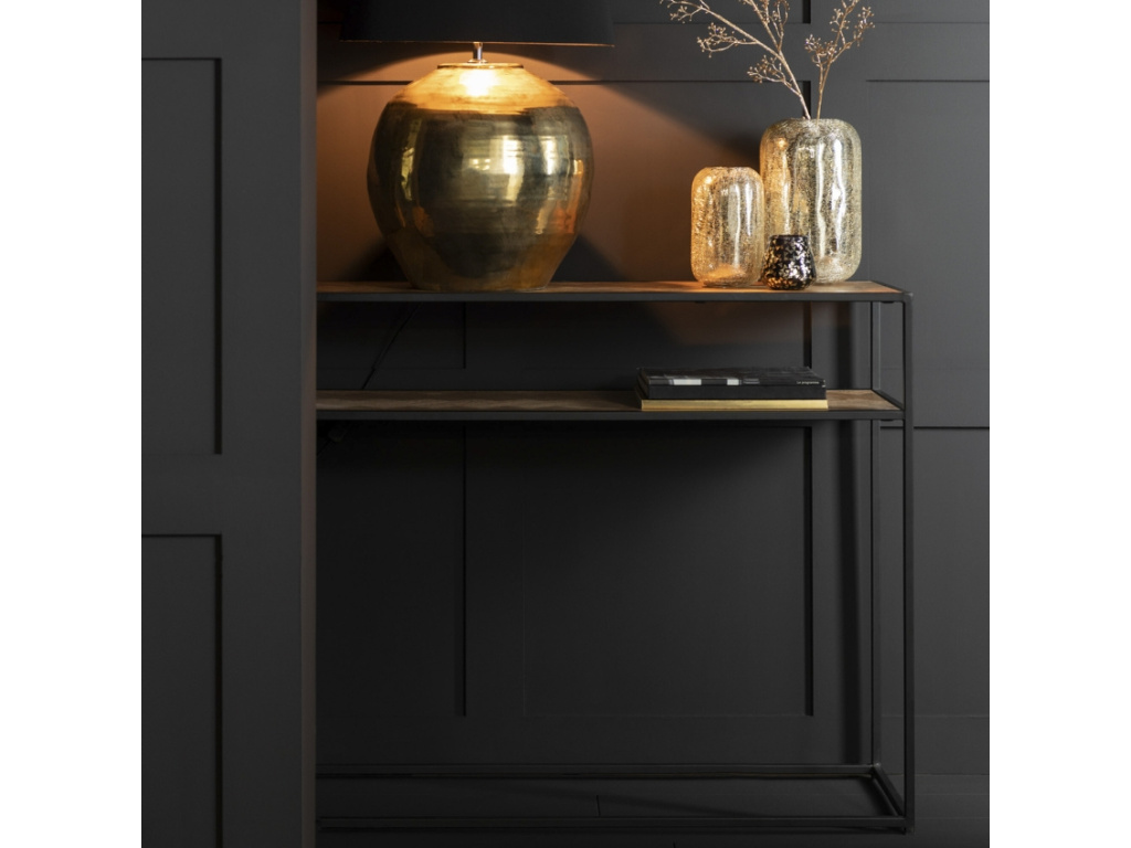 Moderní toaletní stolek Zigtem bude nádherným doplňkem vašeho domova. Podnož a konstrukce jsou vyrobeny z černě lakovaného kovu, který skvěle koresponduje s horní deskou i policí ze dřeva. Toaletní stolek Zigtem se hodí především do moderních interiérů s nádechem industriálního stylu a sloužit může v předsíni, ložnici i obývacím pokoji.