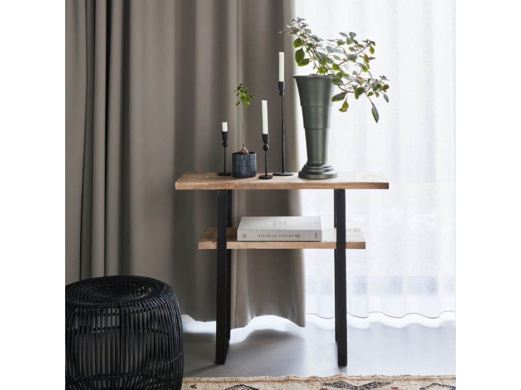 Minimalistický toaletní stolek Woda od House Doctor vnese do vašeho domova moderní nádech. Rovné černé linie kovové podnože perfektně doplňuje hladká deska, vyrobena z mangového masivu přírodní barvy. Tento stylový kousek nábytku lze umístit do prostorných i méně prostorných domácností, a můžete jej využít například také jako polici. Budou se na něm skvěle vyjímat například pokojové rostliny, knihy nebo různé dekorace.