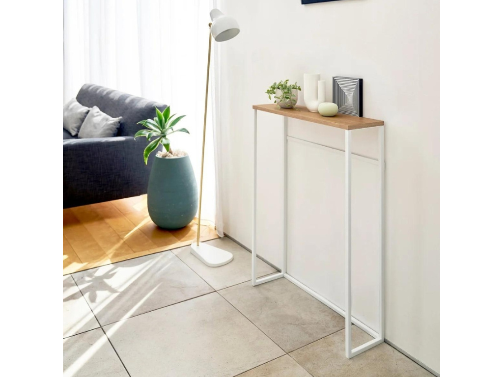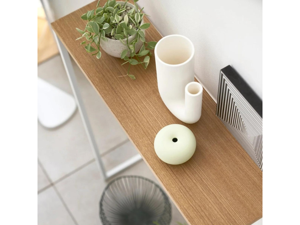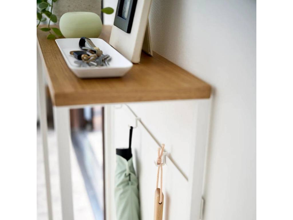 Toaletní stolek Tower od značky Yamazaki bude elegantním a praktickým doplňkem pro vaši předsíň. Bíle lakovaná kovová konstrukce v kombinaci s přírodní dýhou na desce vytváří moderní a čistý vzhled, který se hodí do různých interiérů, od moderního po skandinávský. Stolek je vybaven háčky k zavěšení deštníků nebo lžíce na boty, což zvyšuje jeho funkčnost a praktičnost. Tower je dostatečně velký na to, aby poskytl úložný prostor, ale zároveň kompaktní, aby se vešel i do menších prostorů.