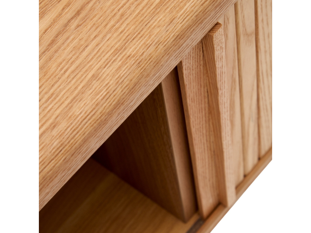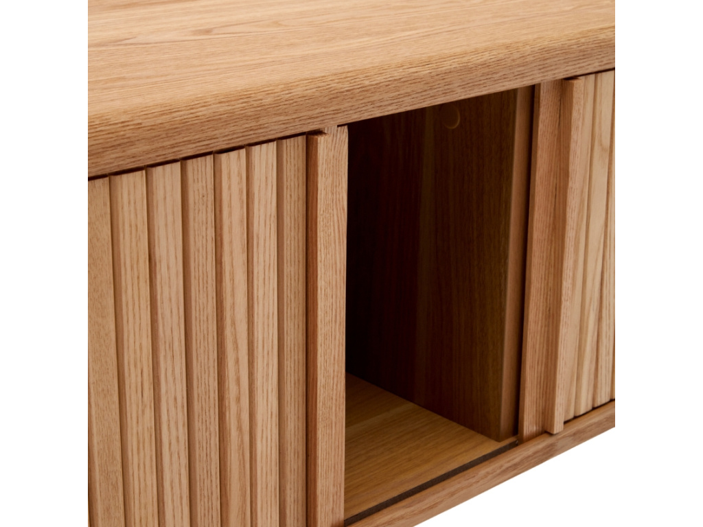 Chystáte se obnovit zařízení vašeho obývacího pokoje? Menší verze TV stolku Mailen z jasanové dýhy nabízí úložný prostor v podobě 2 polic, které jsou skryty za lamelovými posuvnými dvířky. Díky vyšší podnoži si ho navíc můžou pořídit i domácnosti s robotickým vysavačem. Mailen pochází ze stejnojmenné kolekce nábytku, vytvořené týmem Kave Home, ve které najdete další kousky, které vám umožní dokonale sladit váš interiér. Navíc se řadí do série kolekcí s názvem ZEN BALANCE, která si zakládá na nadčasové eleganci v duchu minimalismu a dokonalé harmonii s přírodou. Mailen tak můžete doplnit i o dekorace a doplňky z této série kolekcí a vyšperkovat tak váš domov k dokonalosti.