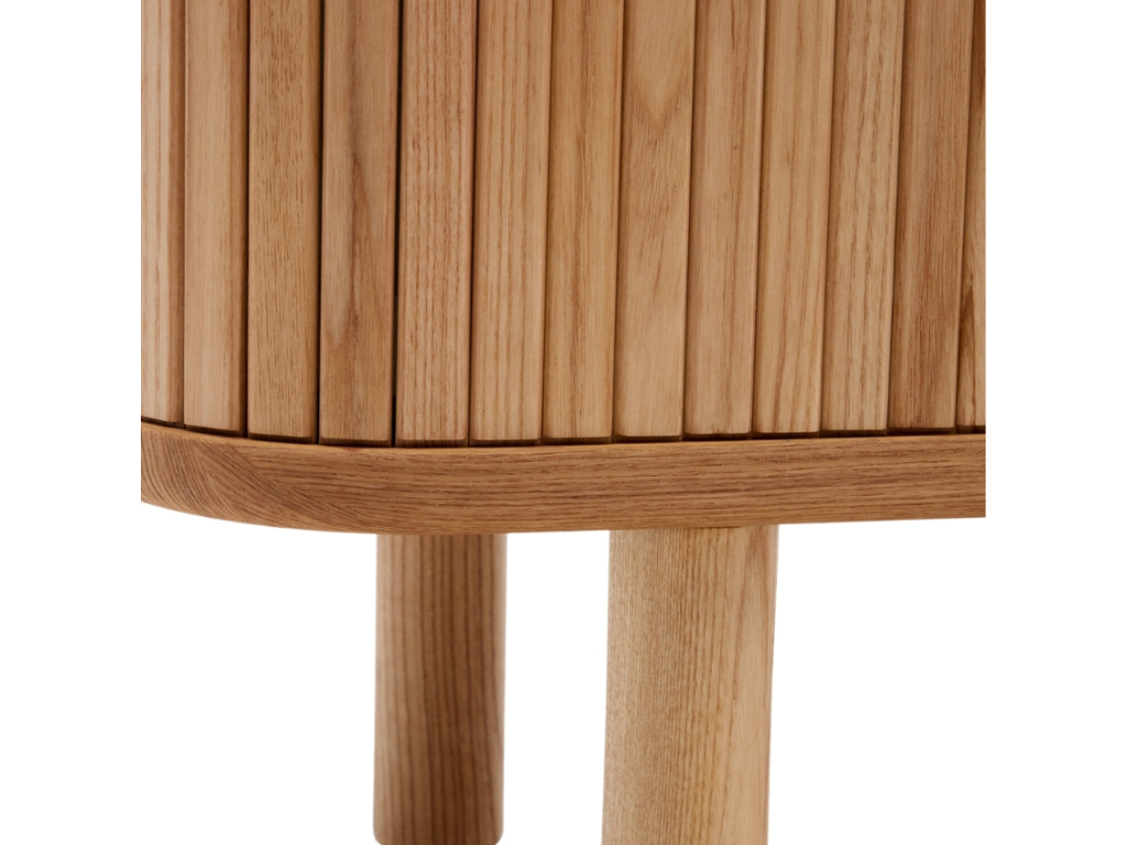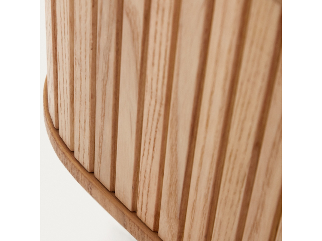 Chystáte se obnovit zařízení vašeho obývacího pokoje a hledáte opravdu prostorný kus nábytku? TV stolek Mailen z jasanové dýhy nabízí úložný prostor v podobě 4 polic, které jsou skryty za lamelovými posuvnými dvířky. Díky vyšší podnoži si ho navíc můžou pořídit i domácnosti s robotickým vysavačem. Mailen pochází ze stejnojmenné kolekce nábytku, vytvořené týmem Kave Home, ve které najdete další kousky, které vám umožní dokonale sladit váš interiér. Navíc se řadí do série kolekcí s názvem ZEN BALANCE, která si zakládá na nadčasové eleganci v duchu minimalismu a dokonalé harmonii s přírodou. Mailen tak můžete doplnit i o dekorace a doplňky z této série kolekcí a vyšperkovat tak váš domov k dokonalosti.