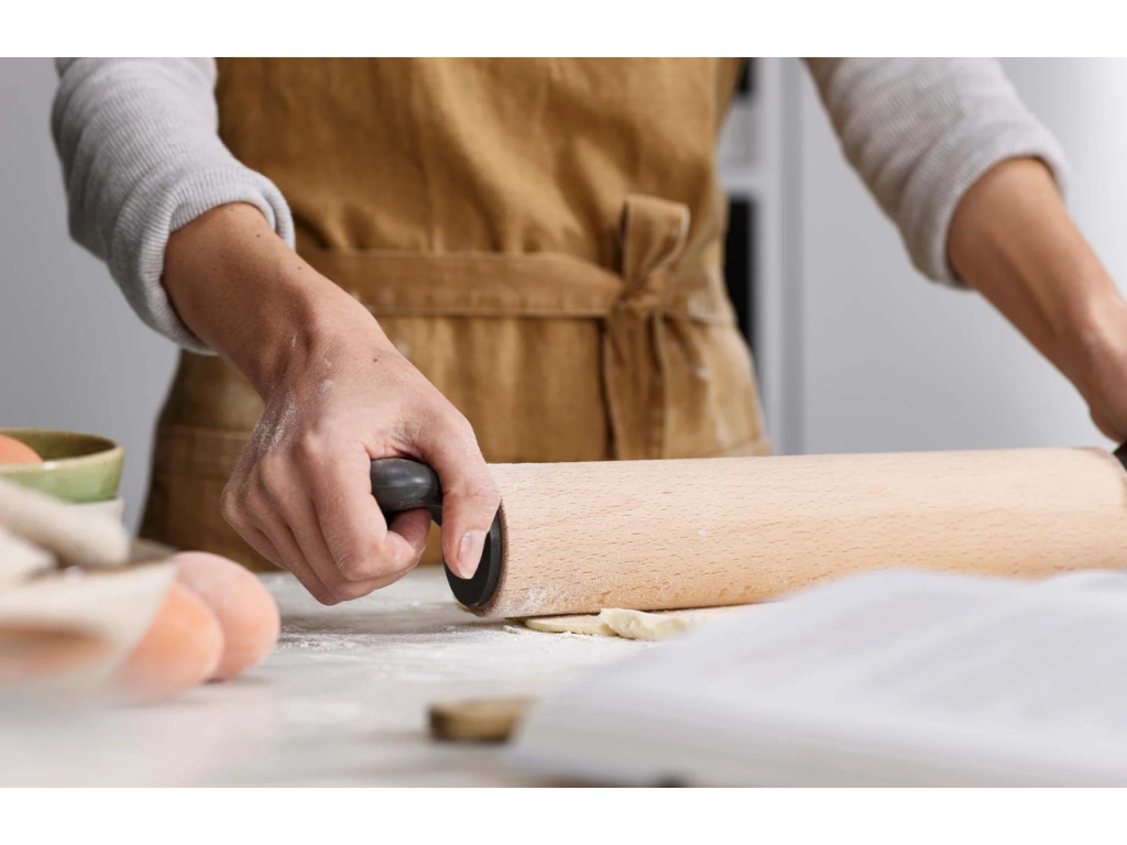 Pořiďte si praktického pomocníka, který vám bude dělat společnost během pečení a přípravy lahodných moučníků! Jedinečný váleček Grip-Pin má široké tvarované rukojeti, které poskytují pohodlnou oporu pro ruce a zápěstí a zároveň zabraňují tomu, aby vaše klouby narážely na pracovní desku při rolování. Dřevěná část válečku z masivního bukového dřeva je široká 30 cm. V plastových madlech válečku jsou otvory k zavěšení, takže váleček můžete mít stále po ruce.