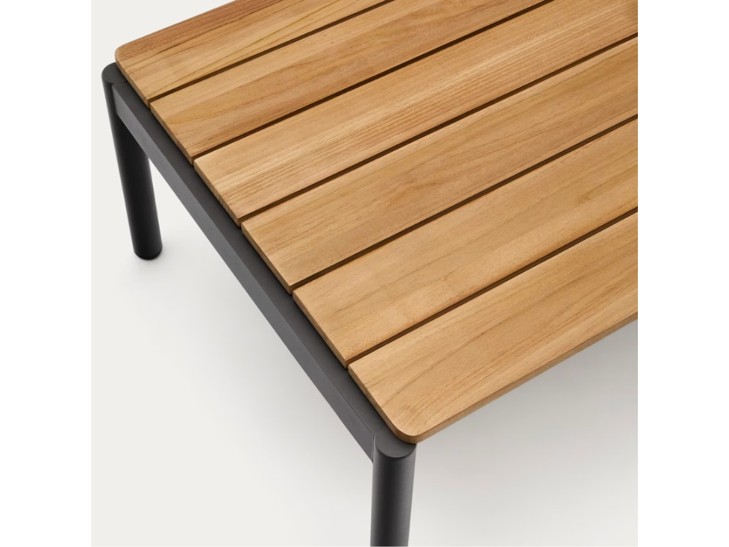 Zahradní konferenční stolek Kave Home Sorells spojuje odolnost hliníkového rámu s přirozenou elegancí teakového dřeva s certifikací FSC. Lehká, ale robustní konstrukce s šedým nátěrem odolává vlivům počasí, UV záření i korozi, takže je perfektní volbou pro venkovní prostory. Kolekce zahradních stolků Sorells nabízí možnost volby mezi více rozměry a odstíny, díky čemuž si lze vytvořit zahradní sestavu podle vlastních představ. Pokud tedy hledáte nábytek, který dokonale zapadne do moderního prostoru a zároveň zajistí dlouhou životnost a uživatelský komfort, Sorells je ideální volbou!