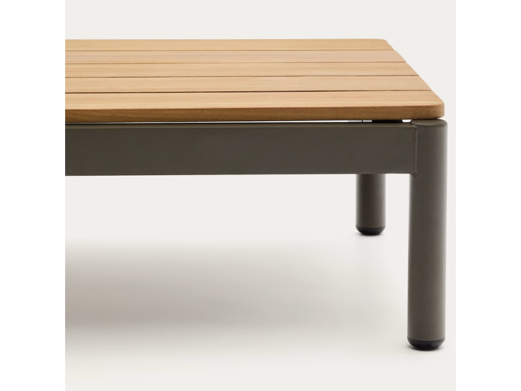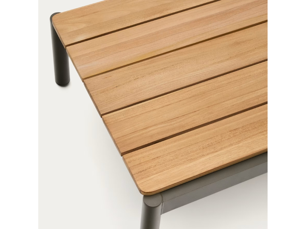 Zahradní konferenční stolek Kave Home Sorells spojuje odolnost hliníkového rámu s přirozenou elegancí teakového dřeva s certifikací FSC. Lehká, ale robustní konstrukce s nátěrem v khaki odstínu odolává vlivům počasí, UV záření i korozi, takže je perfektní volbou pro venkovní prostory. Kolekce zahradních stolků Sorells nabízí možnost volby mezi více rozměry a odstíny, díky čemuž si lze vytvořit zahradní sestavu podle vlastních představ. Pokud tedy hledáte nábytek, který dokonale zapadne do moderního prostoru a zároveň zajistí dlouhou životnost a uživatelský komfort, Sorells je ideální volbou!