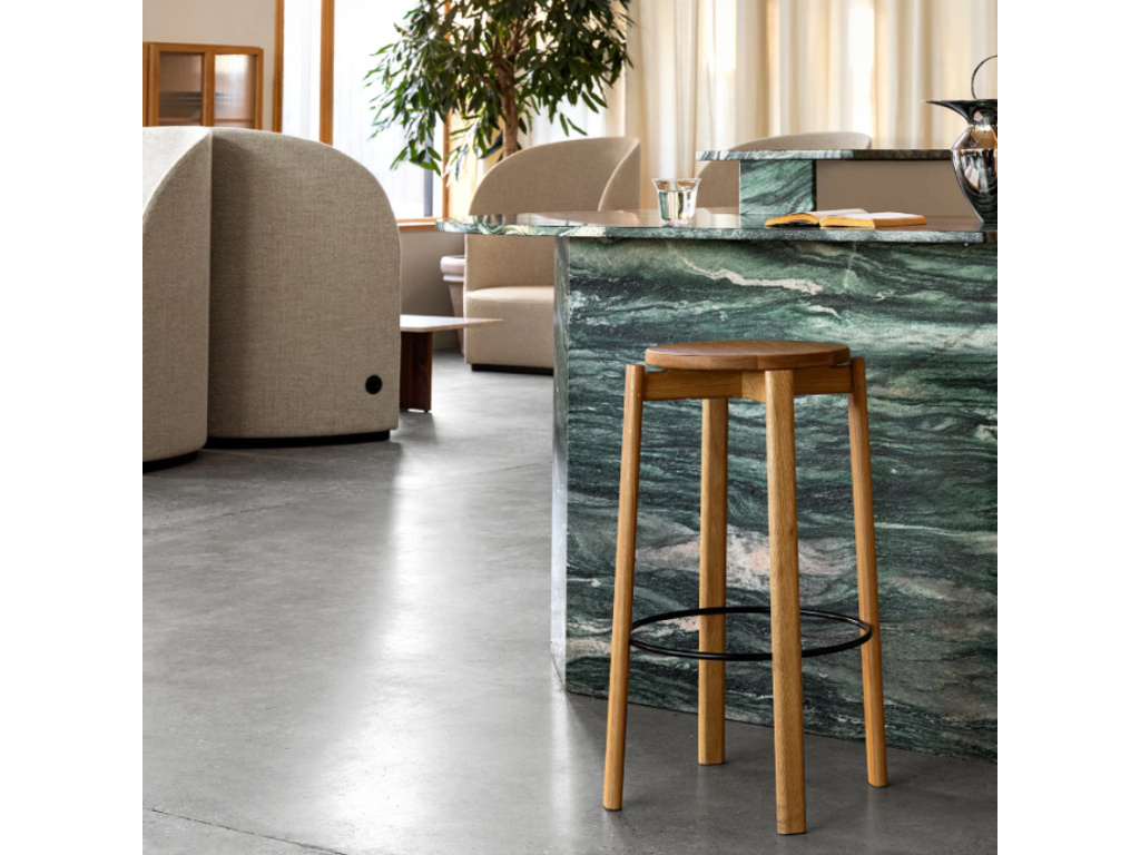 Obohaťte svoji kuchyni nebo jídelnu elegantní barovou židlí ze série PASSAGE od značky AUDO. Tato designovka je vyhotovena z lakovaného, masivního dubového dřeva, doplněna o černou nožní opěrkou pro ještě větší pohodlí. Perfektně vynikne ve společnosti světlé kuchyňské linky nebo ostrůvku, obzvláště pak ve společnosti dalších designovek ze série PASSAGE, které také najdete u nás na webu. Vybrat si můžete z dubové nebo ořechové konstrukce a z několika barev nožní opěrky. Vyberte si tu pravou kombinaci!