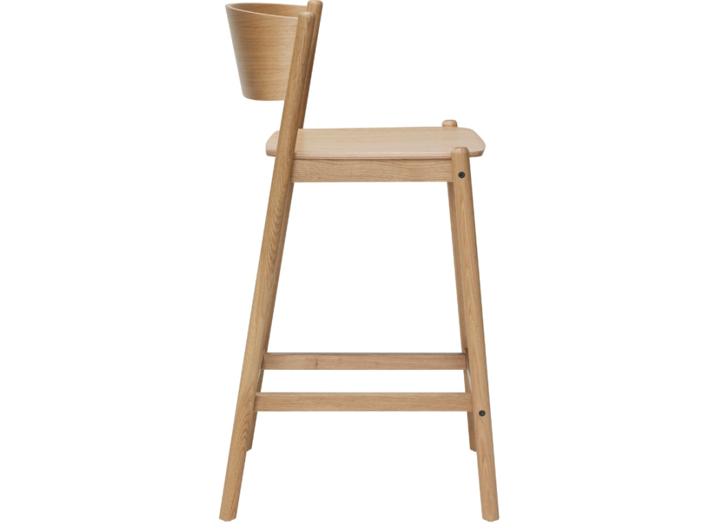 Precizní design barové židle Oblique značky Hübsch vás oslní na první pohled. Hluboká opěrka zajistí opravdu pohodlné posezení u barového stolu. Konstrukce židle je vyrobena z dubové dýhy s podnoží z masivního dubového dřeva. Židle bude perfektním doplněním jídelního kouta v interiérech zařízených v moderním, rustikálním a skandinávském stylu.