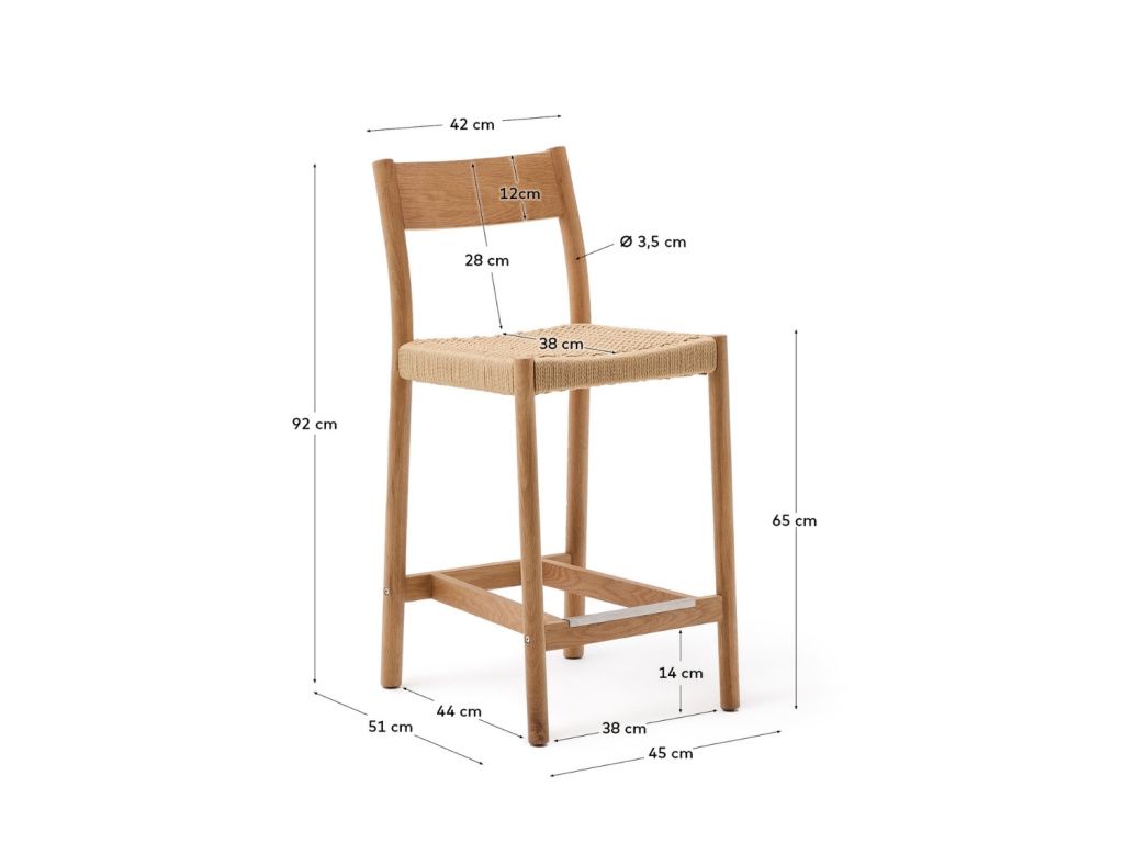 Dubová barová židle Kave Home Yalia s výpletem 65 cm